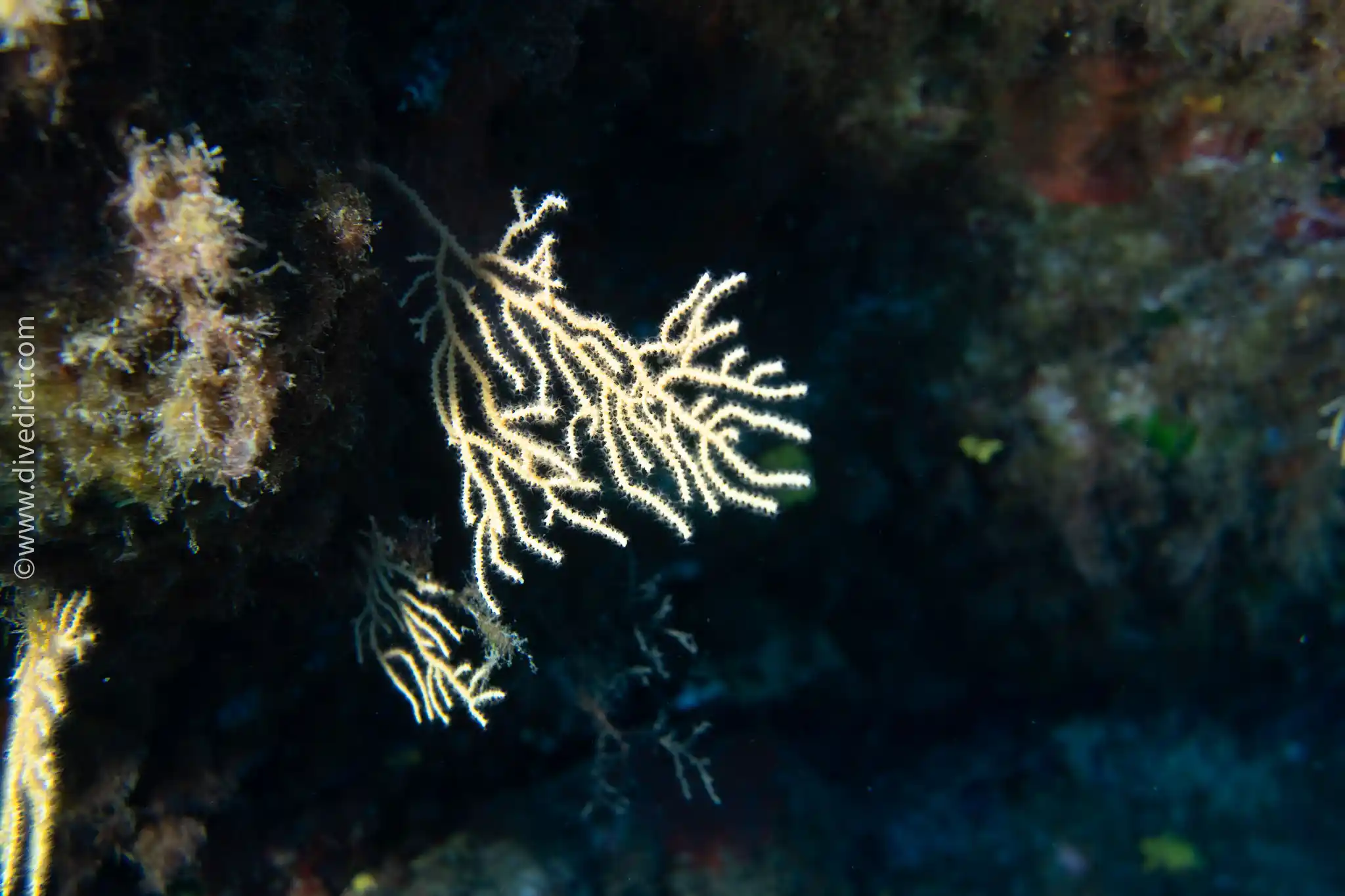 Eine Abfolge von dunklen Schluchten, die alle von verschiedensten Schwämmen, Seegänseblümchen (Parazoanthus), Nacktschnecken in allen Formen und Farben, kleinen Hummern und Meeraalen besiedelt sind... ein Tauchgang, den man nicht verpassen sollte!