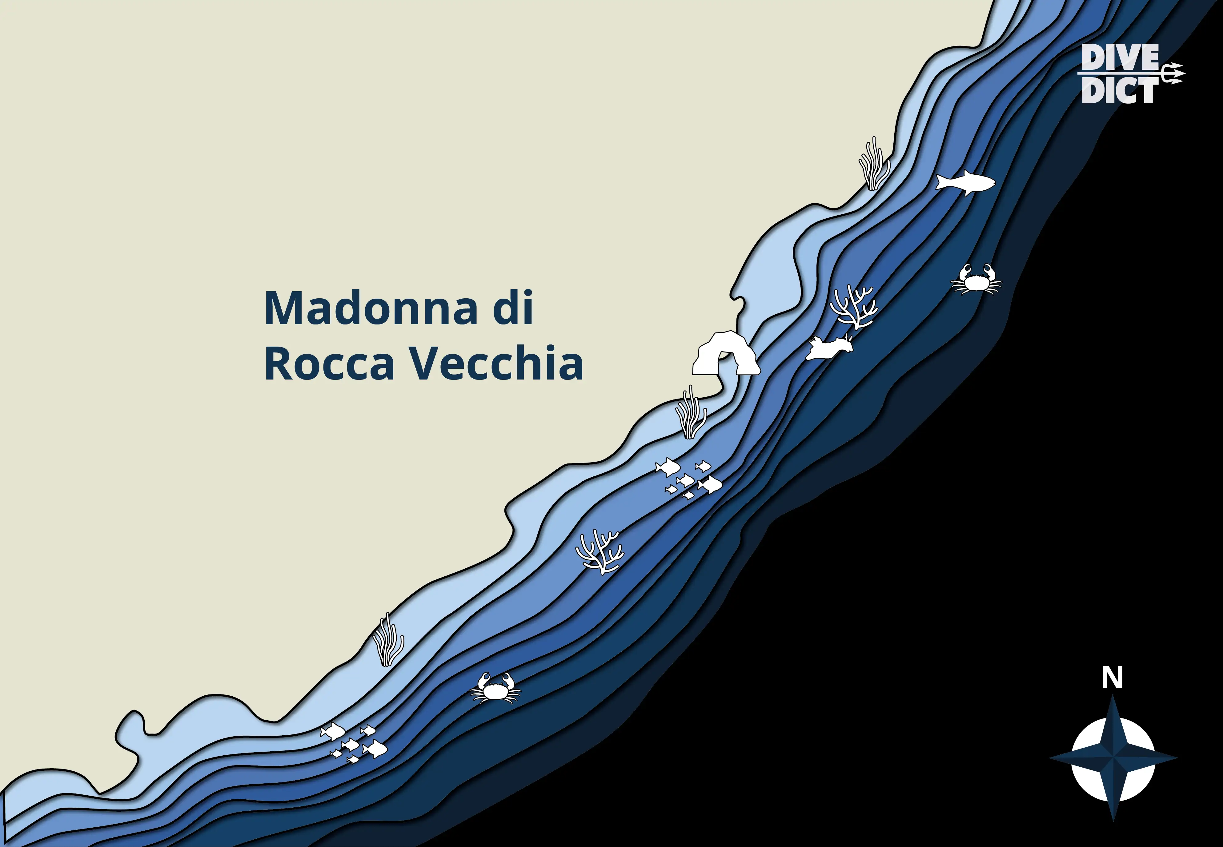 Rund um den Felsen wird die Landschaft von faszinierendem Neptungras (Posidonia) geziert, in denen sich Seenadeln (Syngnathidae) und Seespinnen (Maja squinado) tummeln.