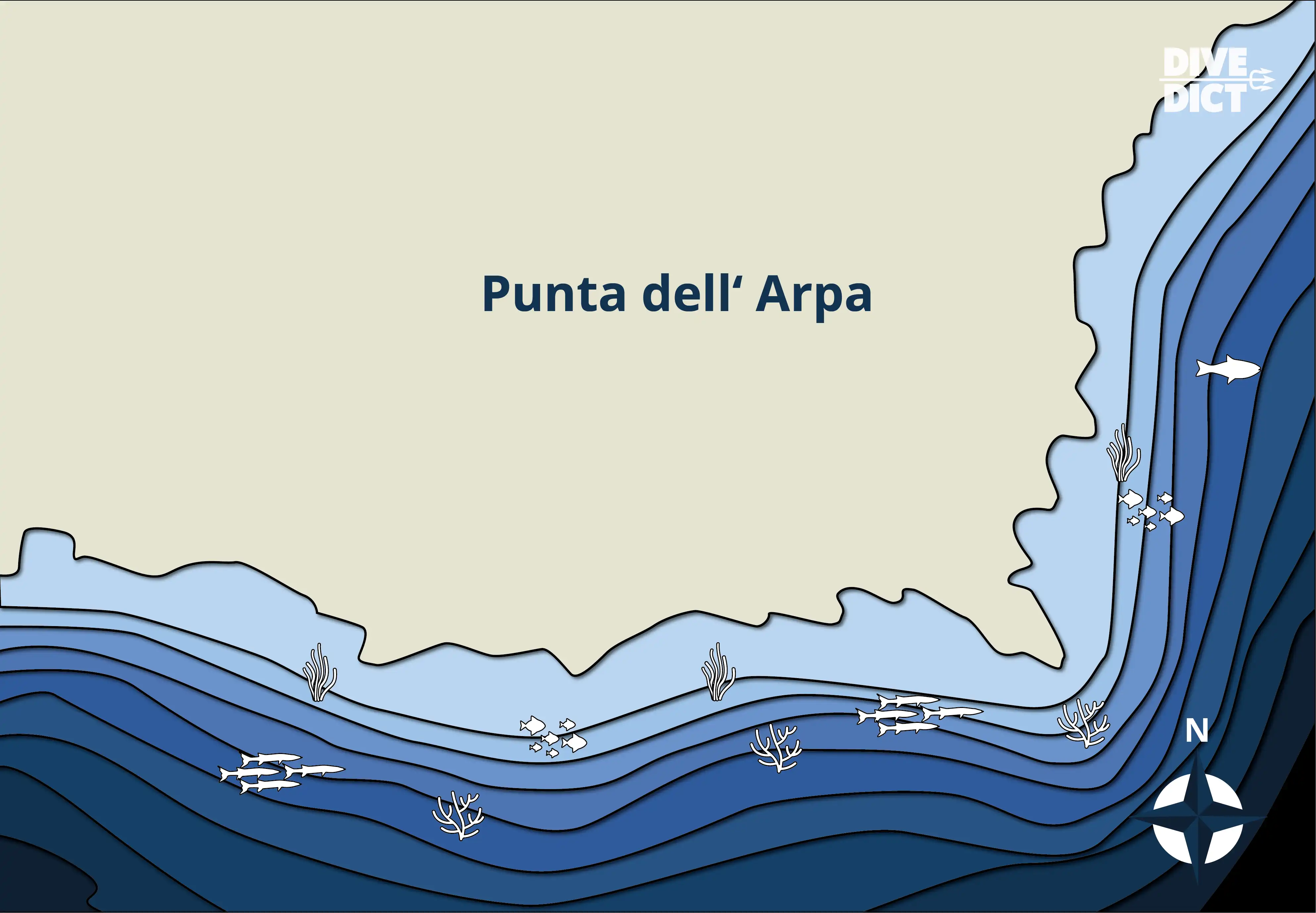 Hier befinden wir uns am südlichsten Punkt Usticas. Schon die Landschaft über der Wasseroberfläche lässt ahnen, was die Unterwasserwelt verspricht.