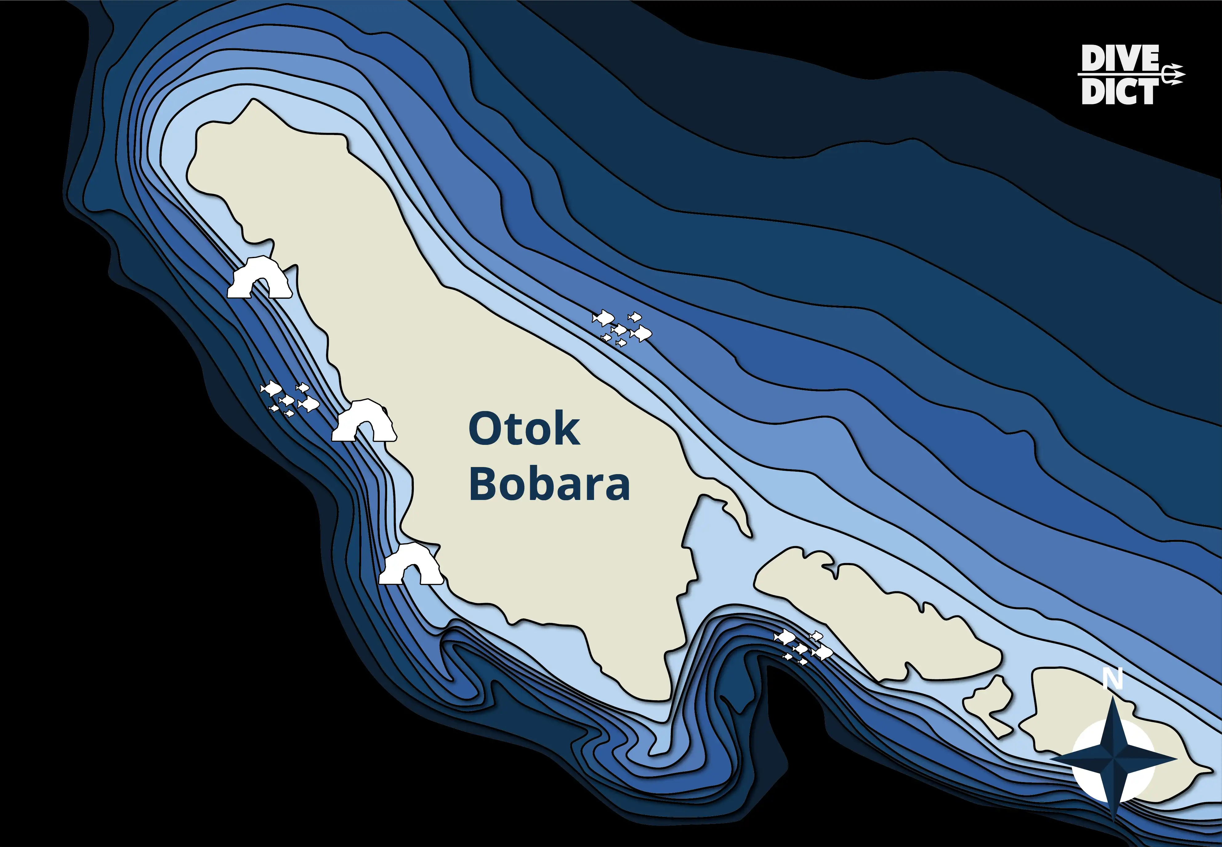 Die Felsen im Flachwasser, die Höhle sowie die Wand des Abgrundes bieten das perfekte Zuhause für Meerbrassen, Barsche, Muränen