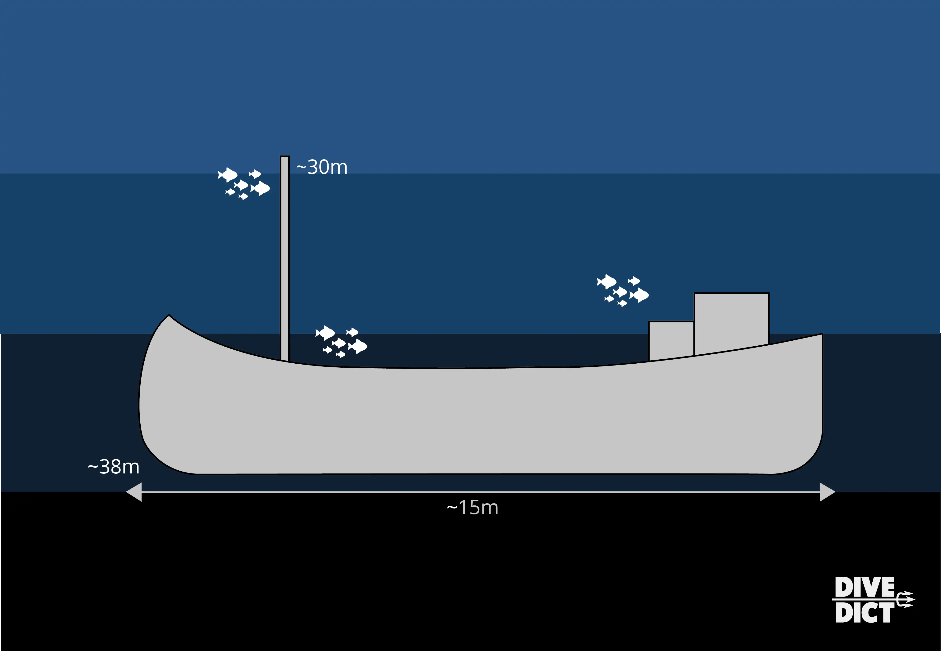 Der Tauchplatz ist mit dem Boot erreichbar.