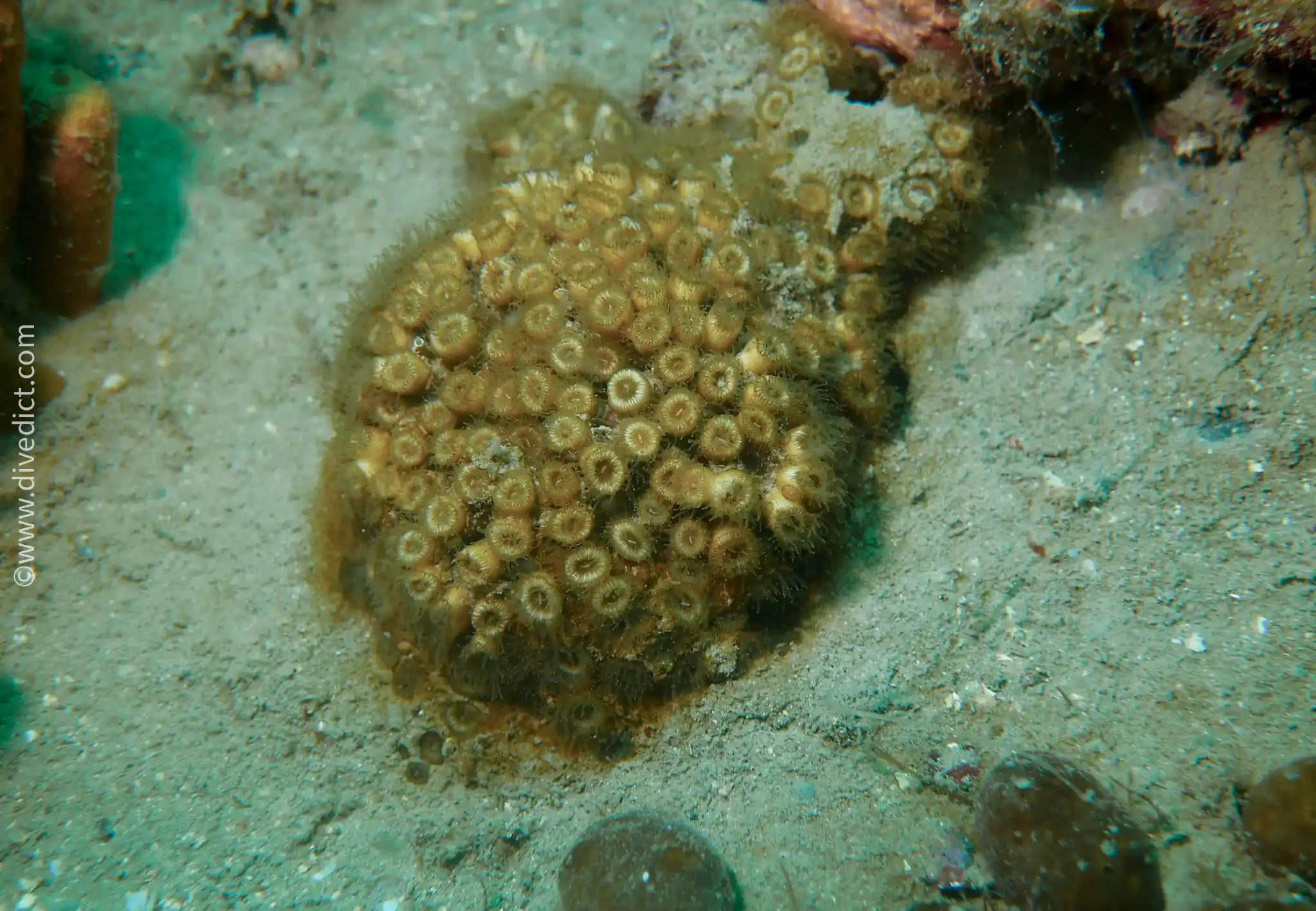 Übrigens hat die Rasenkoralle Gemeinsamkeiten mit Korallen in den Tropen. Nämlich beherbergt auch sie symbiotische Algen (Zooxanthella-Algen), die ihr einerseits ihre Farben verleihen, andererseits wird die Rasenkoralle dadurch zur einzigen kolonialen Steinkoralle, die im Mittelmeer potentiell zu Riffbildung fähig ist.