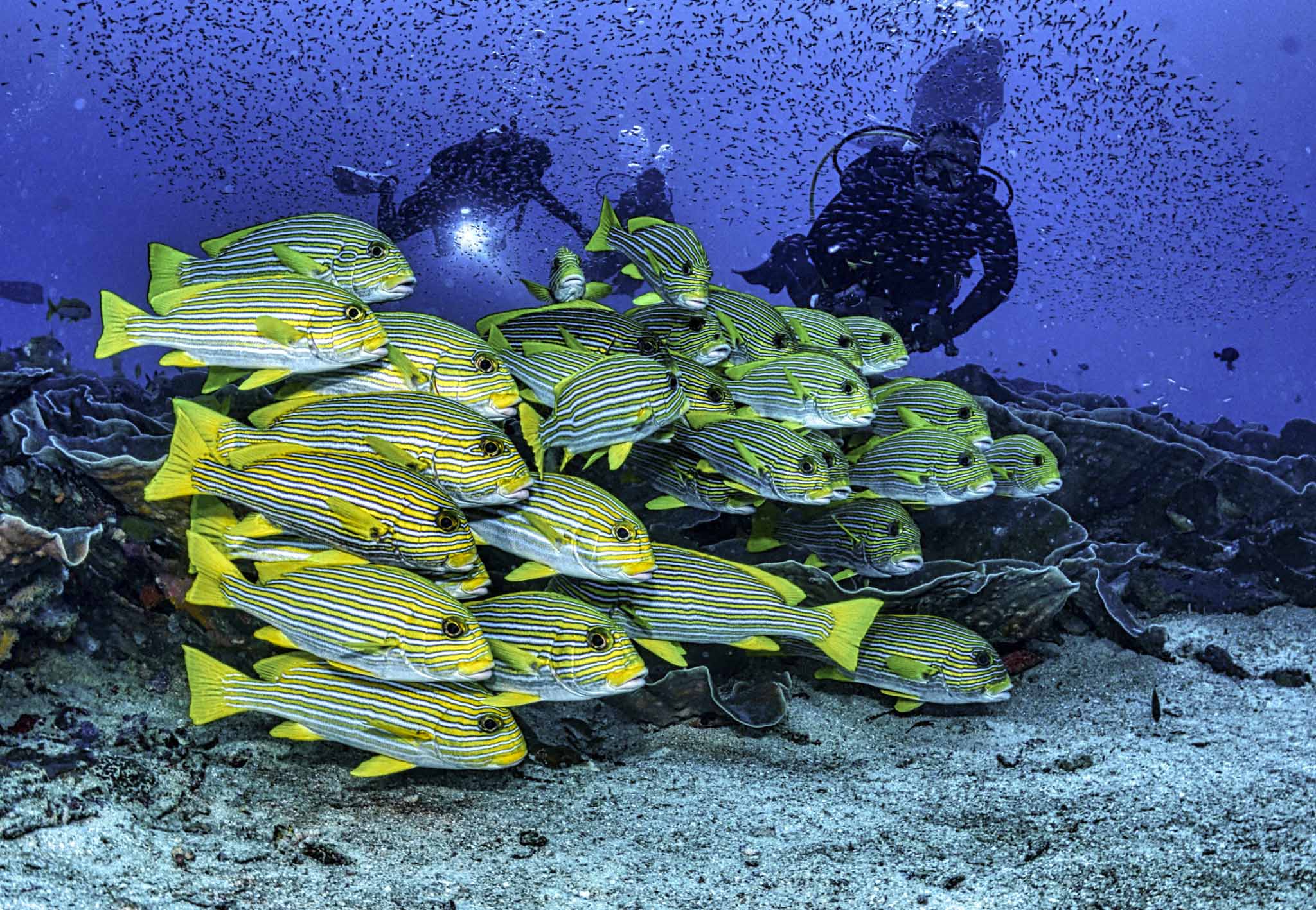 Die Gelbgestreifte Süßlippe ist vor allem nachtaktiv und tagsüber meist ruhig in kleinen Gruppen in geschützten Bereichen des Riffs zu finden. Wenn du sie beim Schnorcheln oder Tauchen entdecken möchtest, schau am besten in der Dämmerung oder bei Nacht nach.