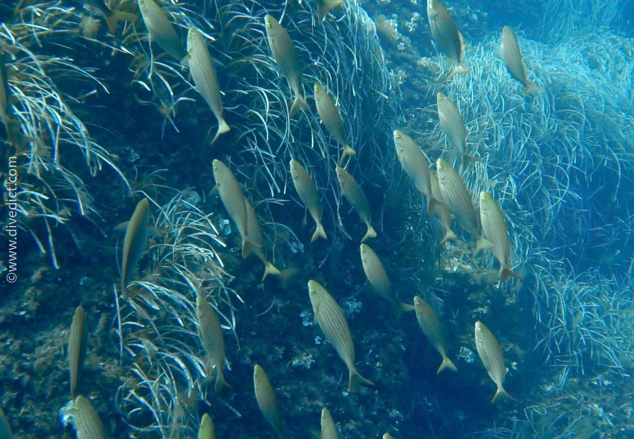 Wenn ein Feind kommt, schwimmen sie alle blitzartig weg von der Küste ins Freiwasser. Andere Fische können an dieser großen Wolke, die gerade flieht, erkennen, dass Gefahr besteht.