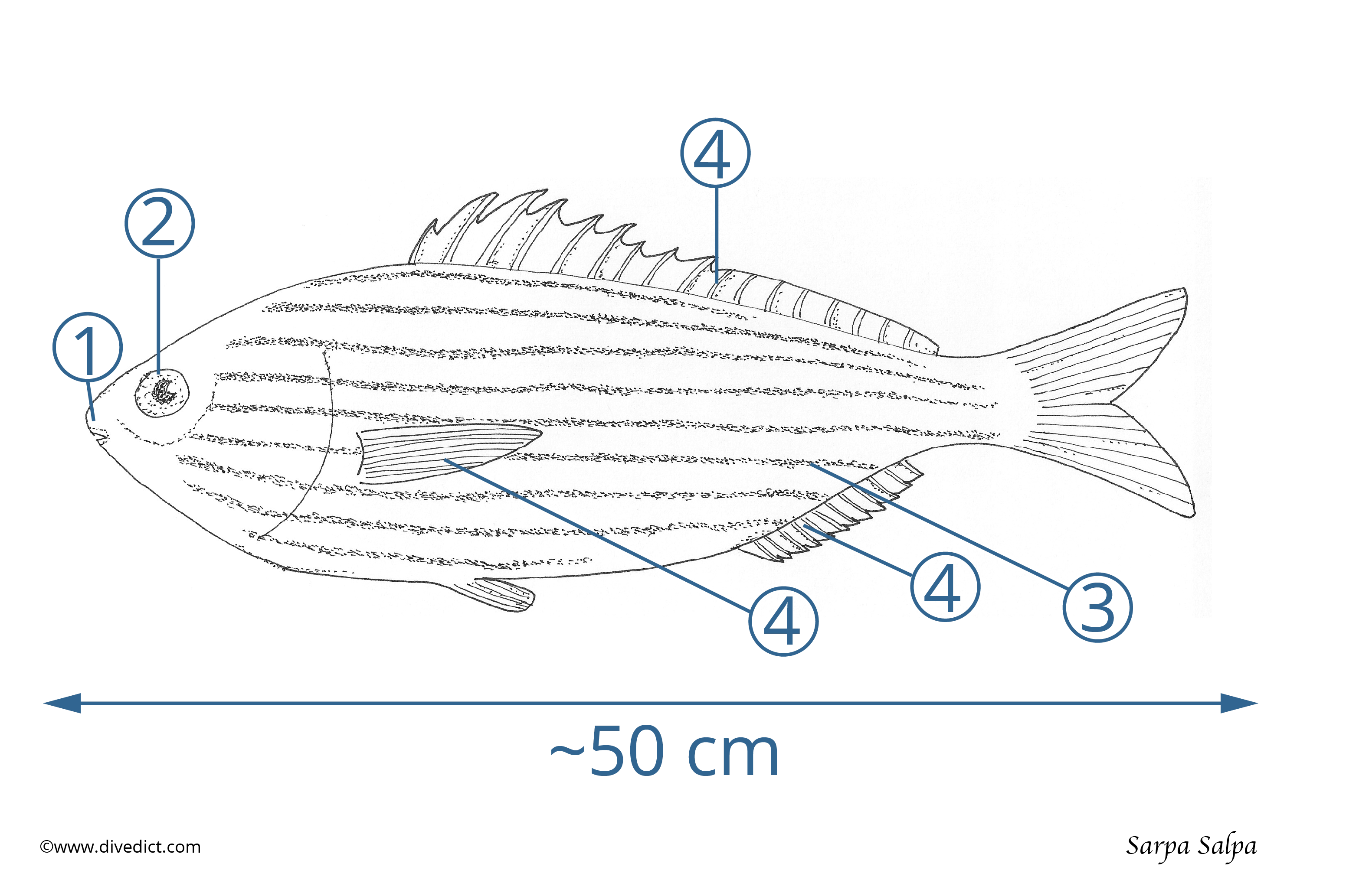 Die Goldstrieme ist leicht an ihren gold-gelben Längsstreifen auf ihrem silbernen Körper zu erkennen.