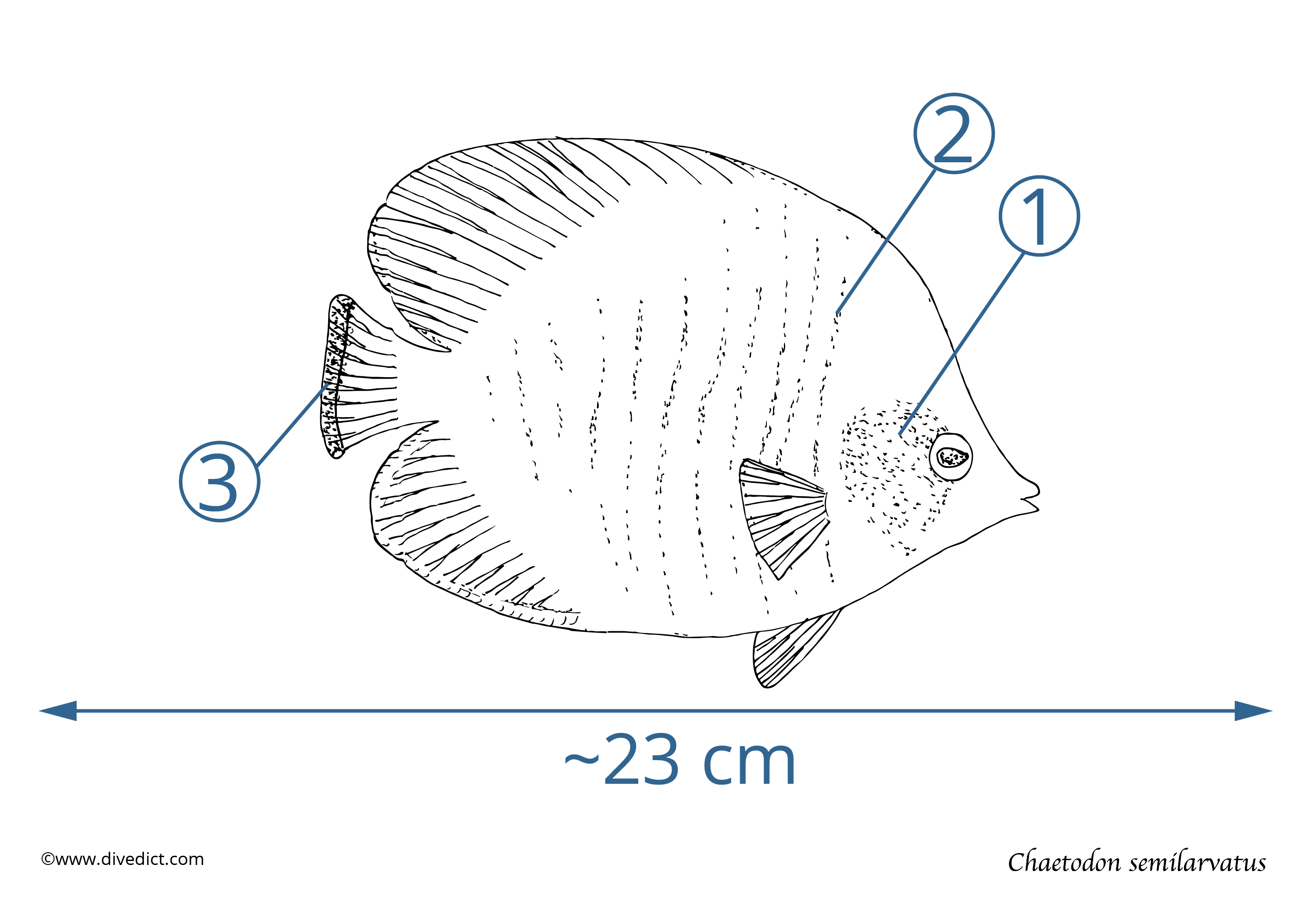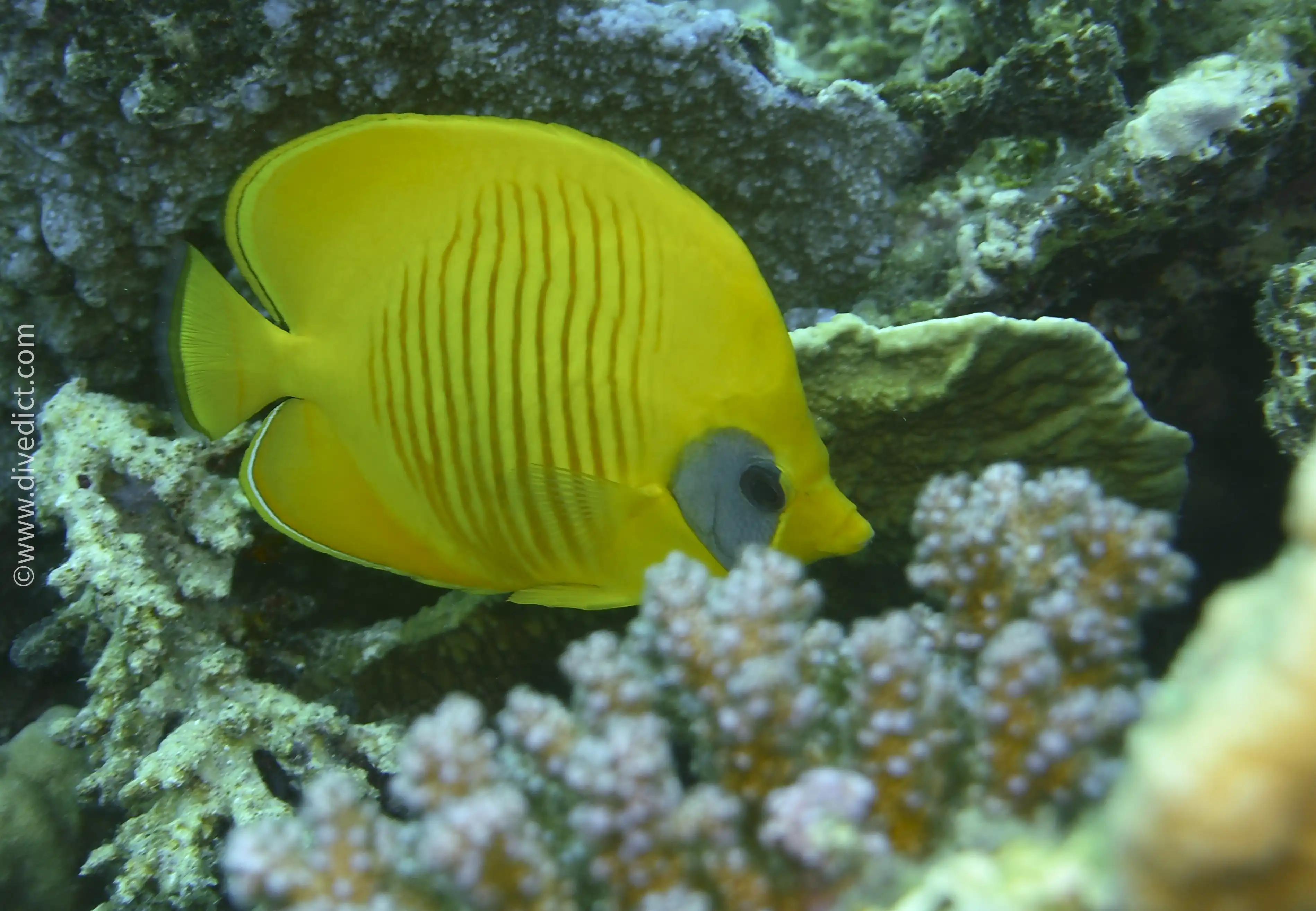 Dieser Kollege gehört sicherlich zu den schönsten Fischen unserer Meere. Dank seiner grell-gelben Grundfarbe ist er ein richtiger Hingucker. Seine dezenten, dunkelbraunen, vertikalen Streifen sowie seine graublaue Augenmaske dienen ihm zur Tarnung.