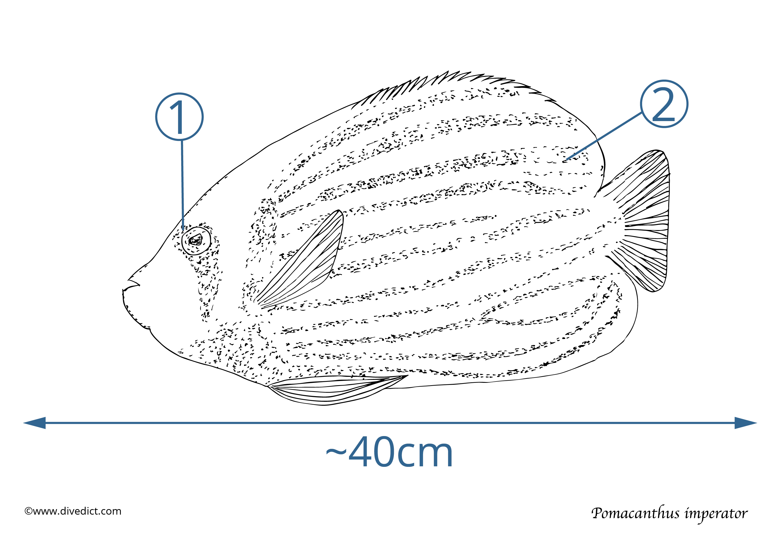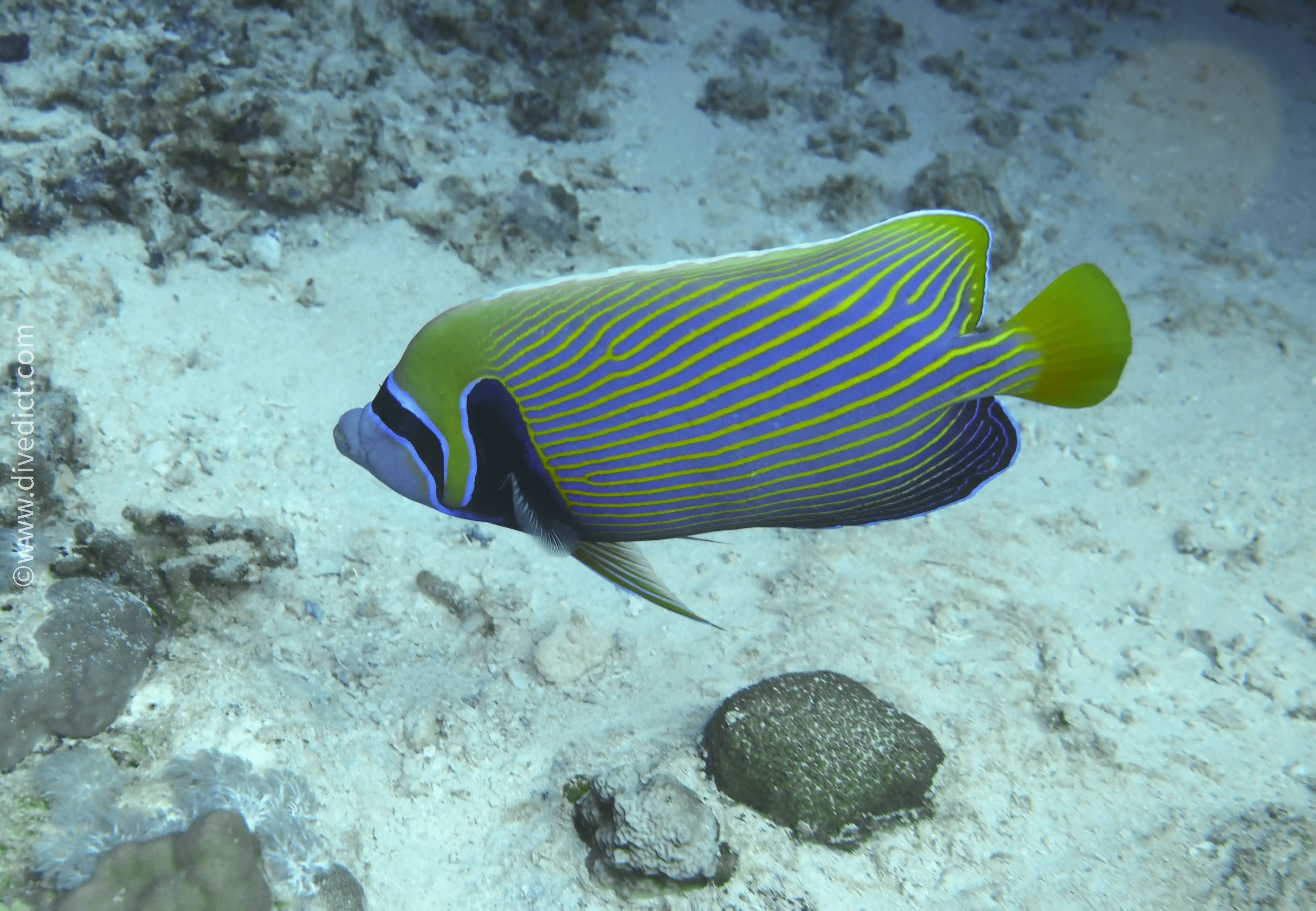 Die Jungtiere verstecken sich gerne in kleinen Löchern im Flachwasser. Wie bei allen Kaiserfischen gilt es auch beim Imperator, dass die Jungtiere ganz anders aussehen als die adulten Tiere was es uns wirklich nicht leicht macht sie zu identifizieren.