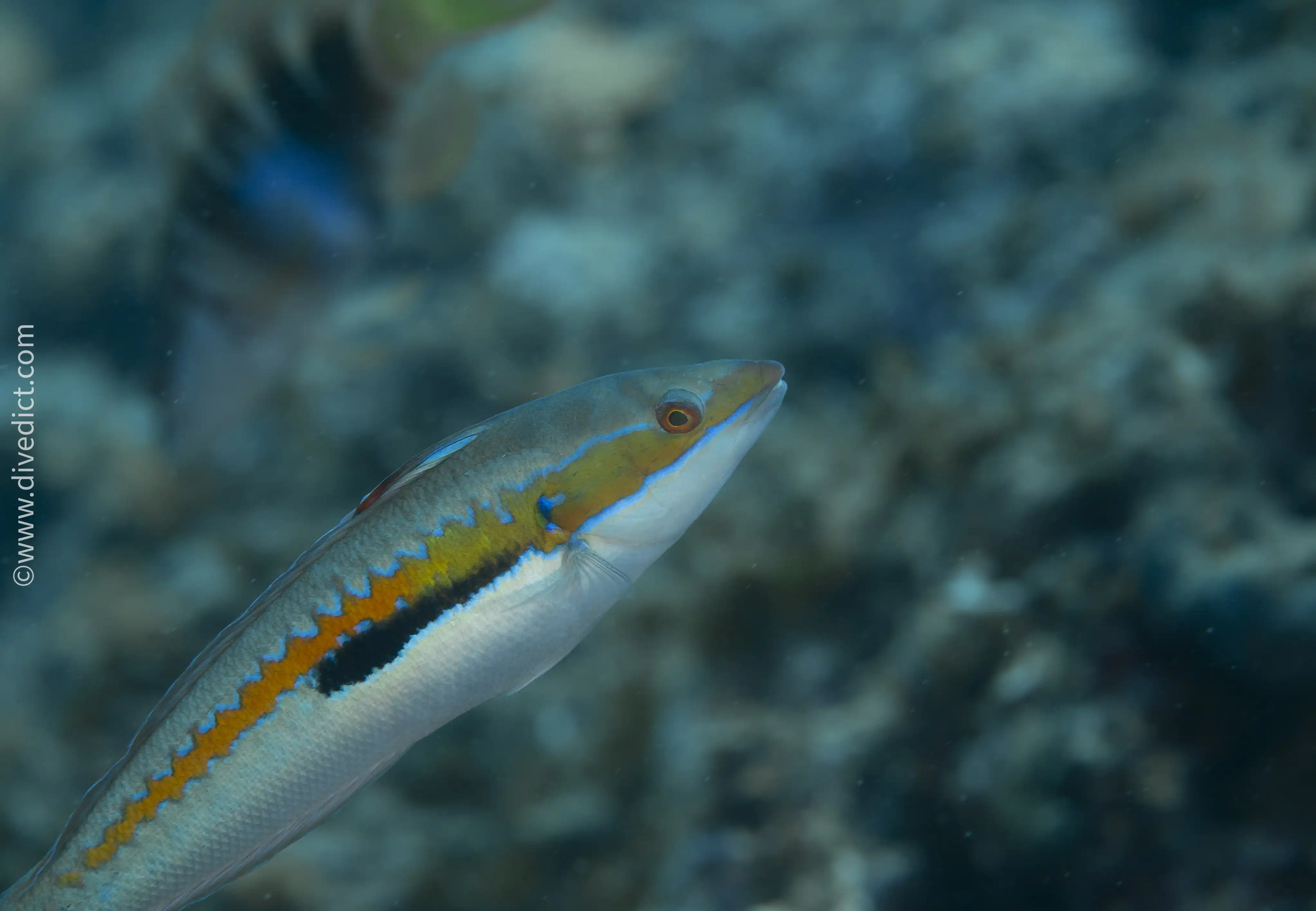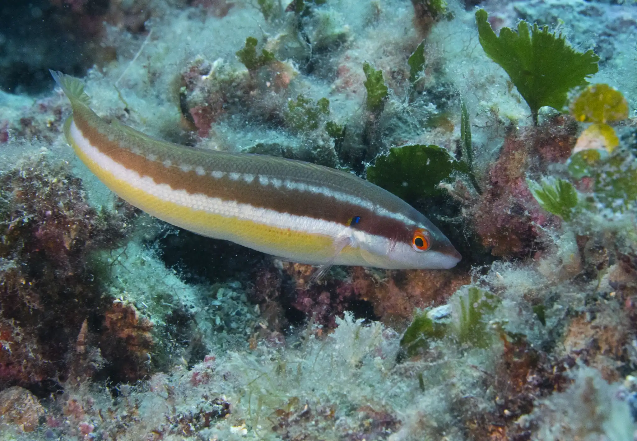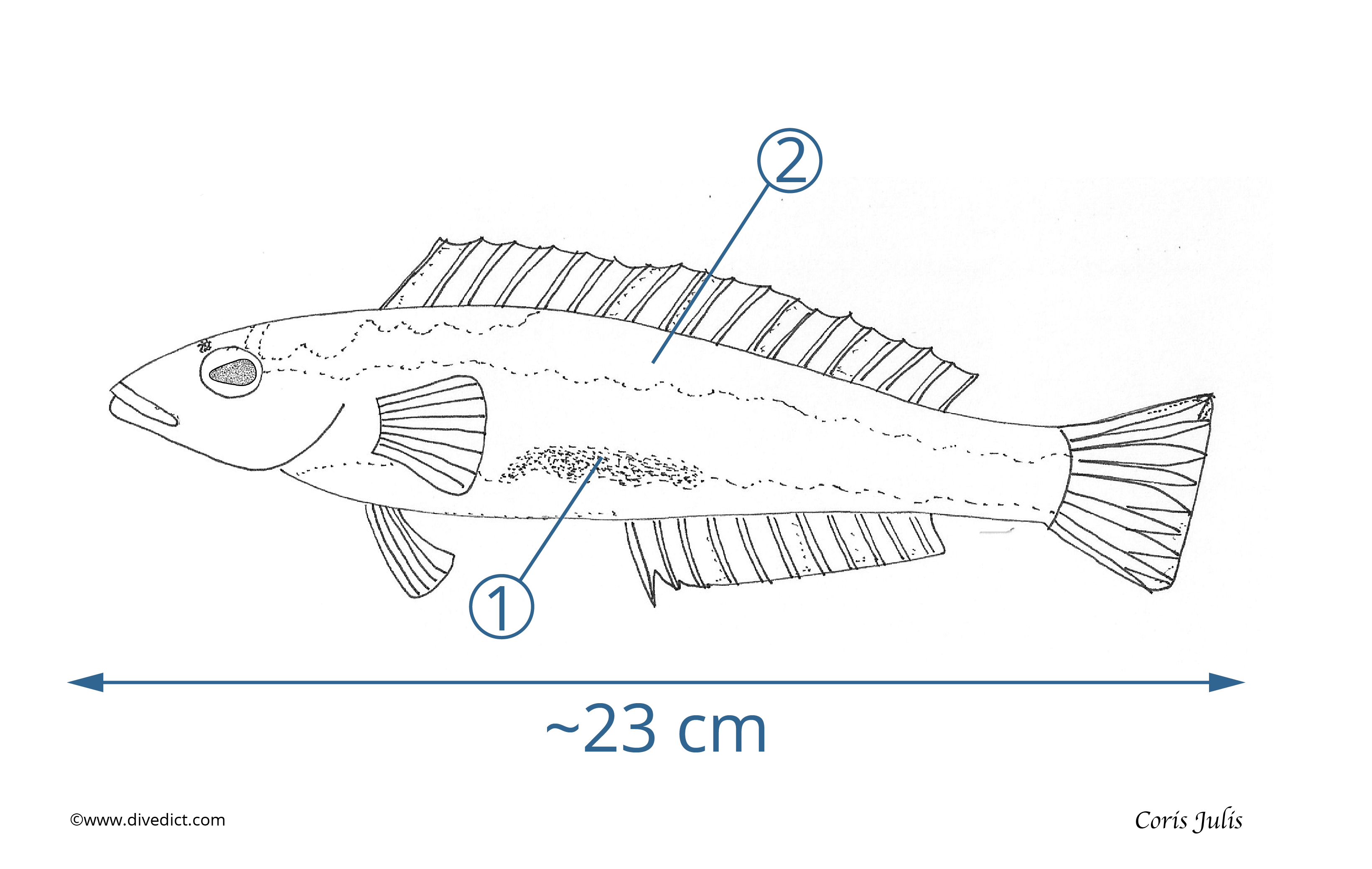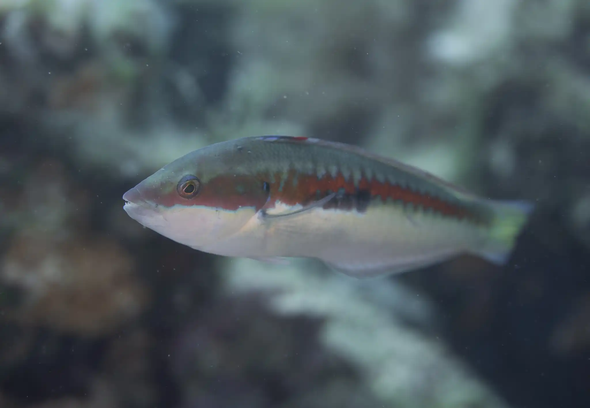 Wie schon beschrieben, beginnen die Tiere ihr Leben als Weibchen, die eine unscheinbare Färbung. Diese ist rötlich-braun mit einer gelben Linie entlang der Seite sowie einem weißen Bauch.