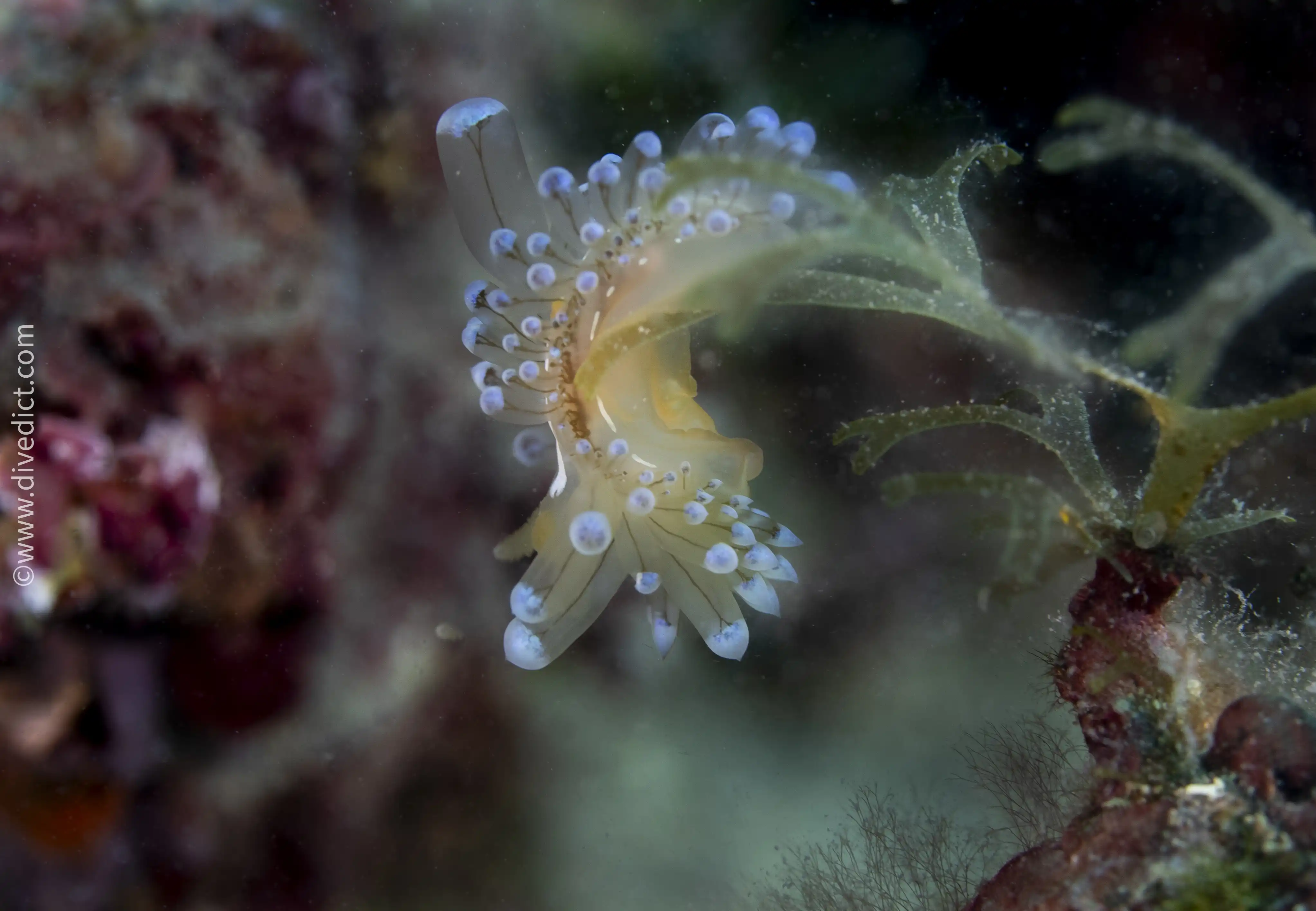 Ihr Körperchen ist semi-transparent mit lamellen- oder keulförmigen Rhinophoren mit bläulich oder weißlich schimmernden, rundlichen Endungen.