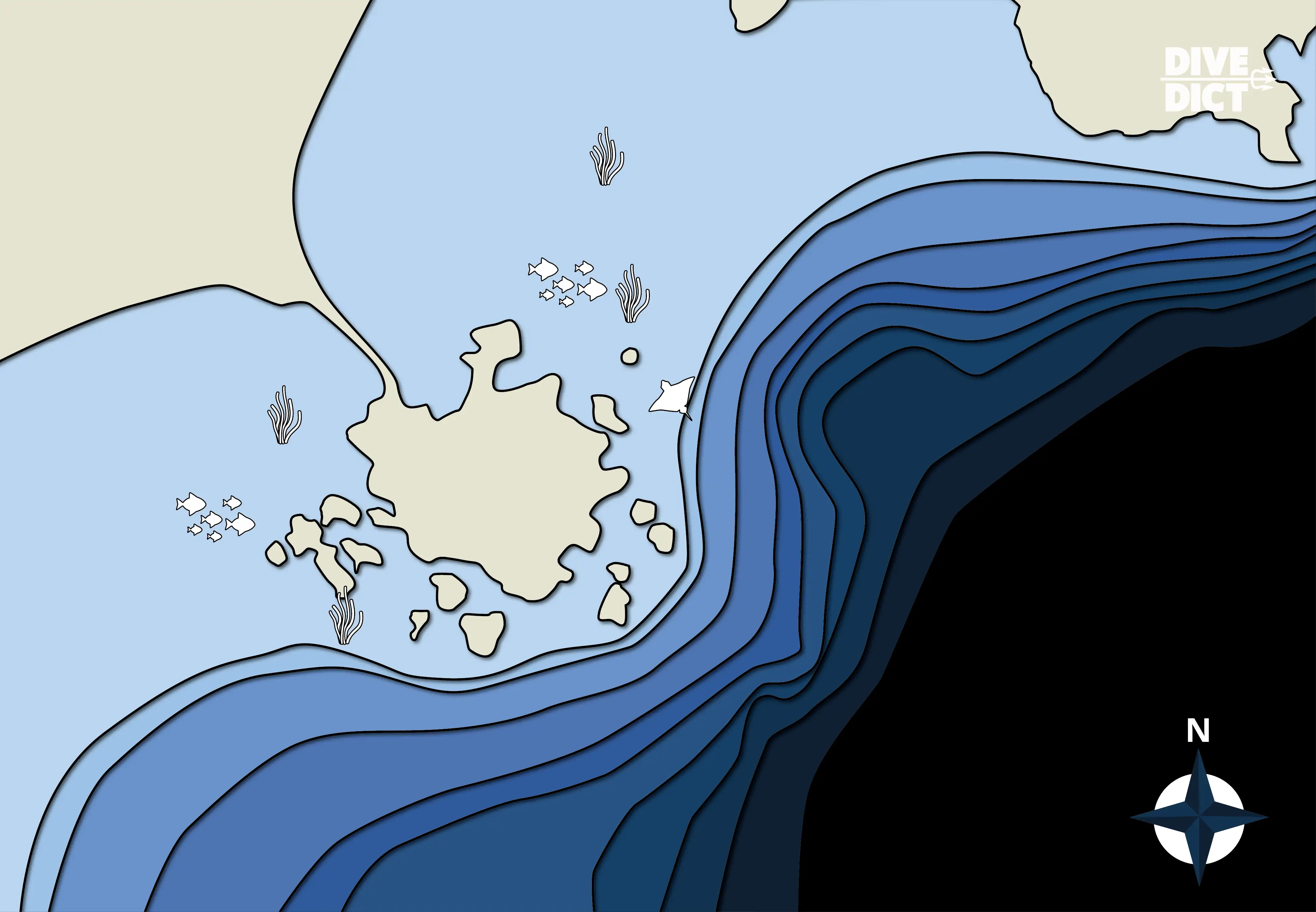 This dive site impresses with its variety: in one moment you focus on the macro life in the seagrass or at the wall, and in the next on large fish in open water.