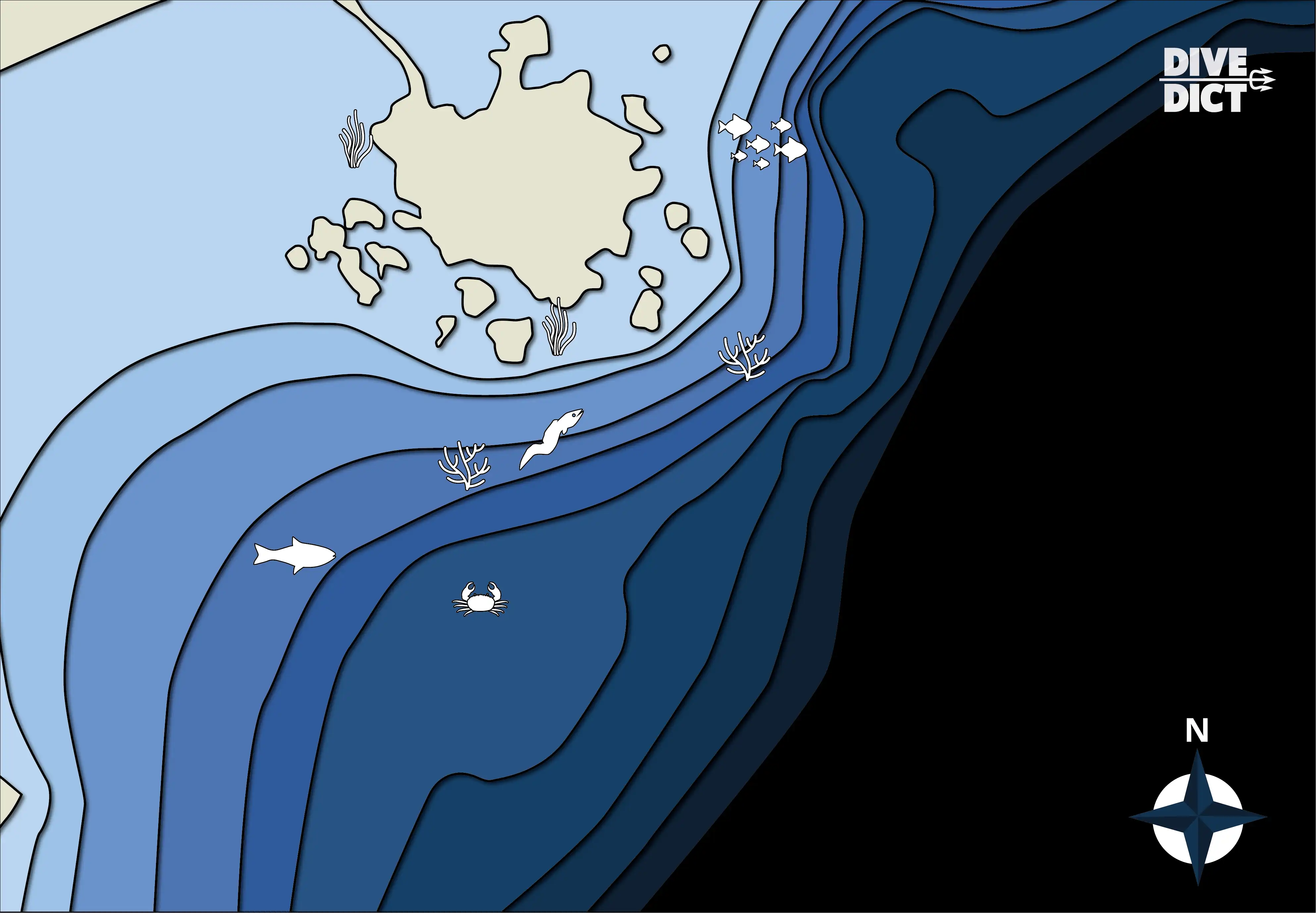 From starfish to moray eels all kinds of creatures hide between the sponges or in the crevices of the rock walls, and those who dare to take a look into the vast blue might even spot the increasingly rare tuna.