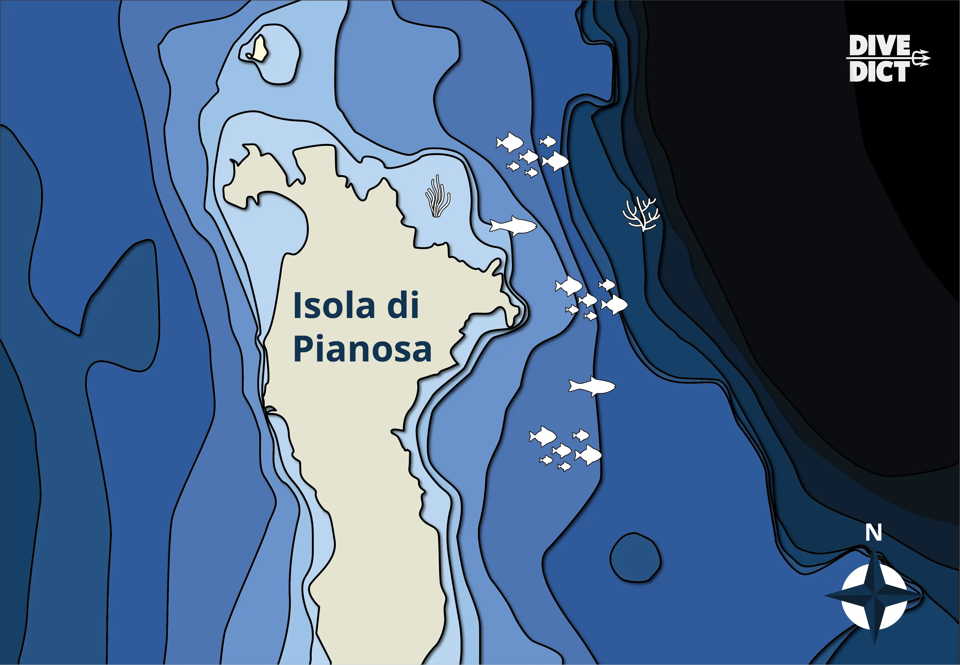 In 2013, diving was made accessible in the Isola di Pianosa National Park, albeit in a very controlled manner: the dive sites may only be visited by dive centers that have been authorized by the Tuscan Archipelago.