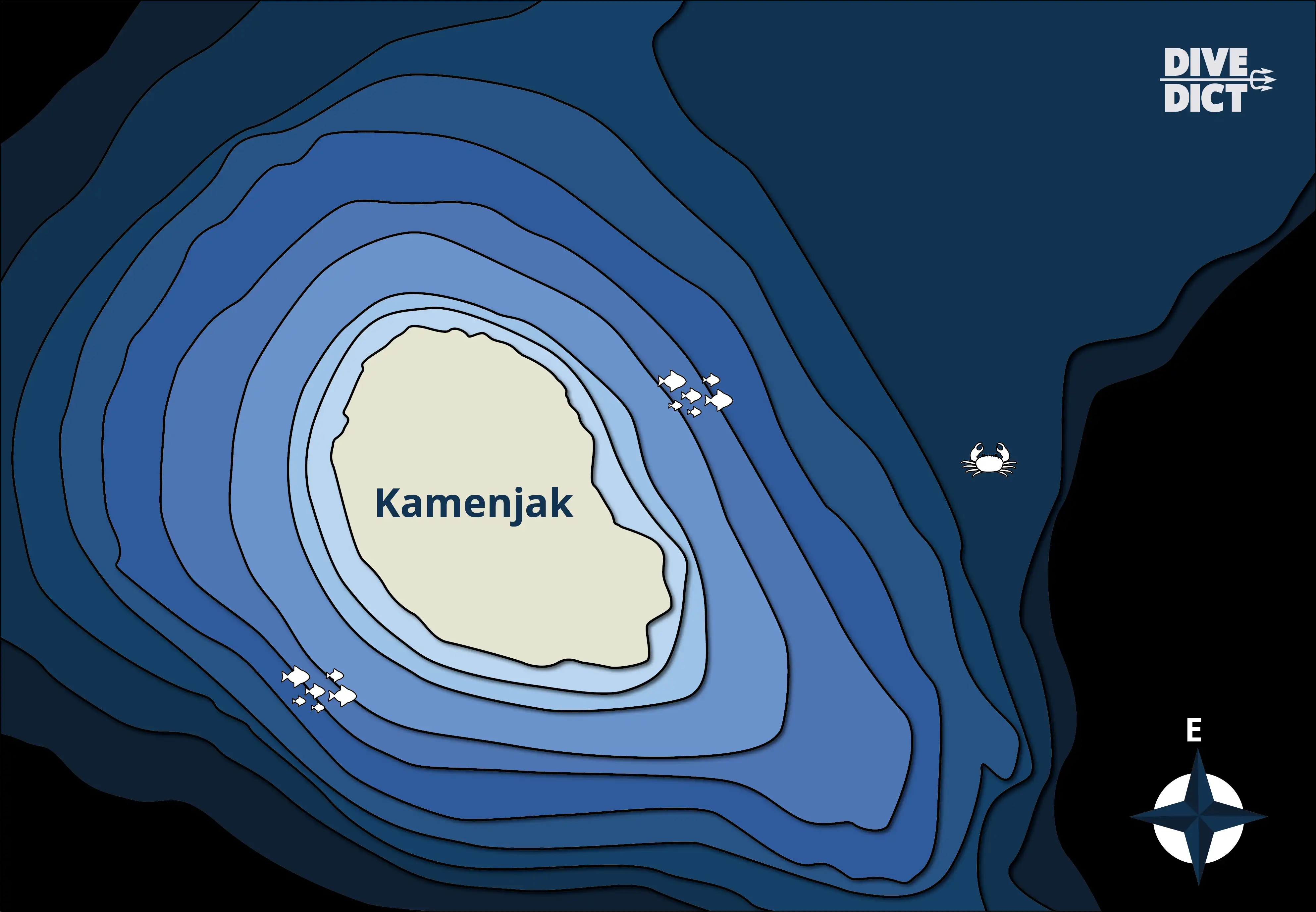 This dive site is located at the foot of the highest lighthouse in Istria — the round stone tower rises an impressive 35 m towards the sky.