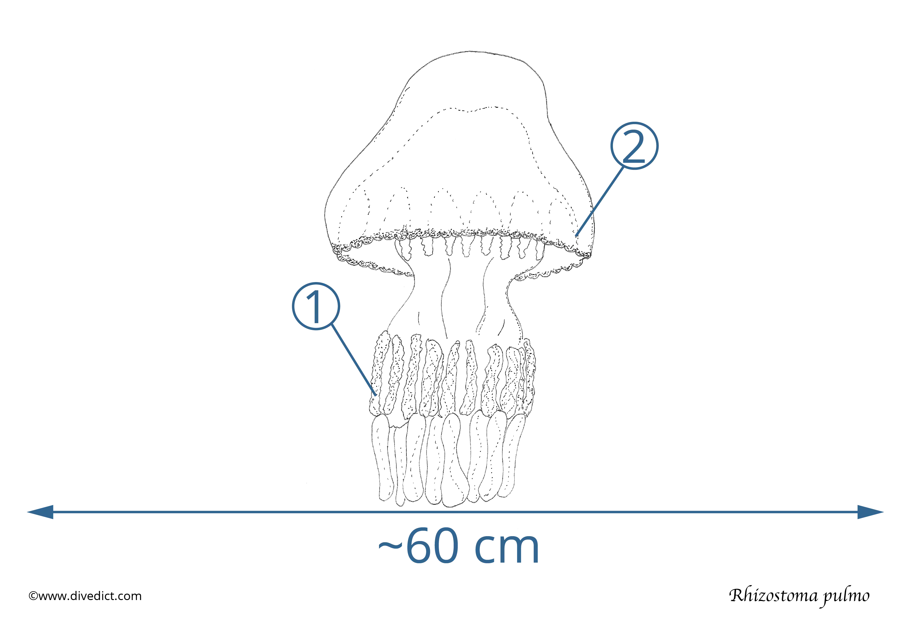 As beautiful as the tentacles of Dustbin-lid Jellyfish may look, they are unfortunately not suitable for catching prey.