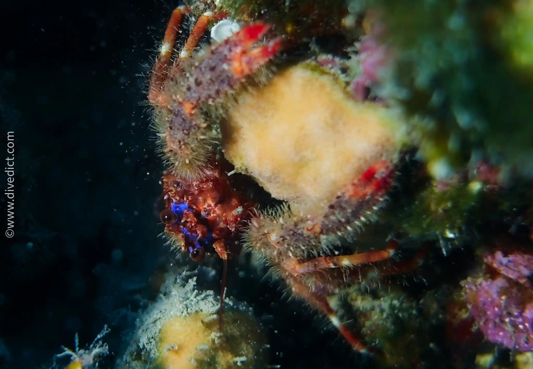 He then pulls them in and uses his second jaw feet to comb out the remaining crumbs from his meal that have stuck there. Nothing is wasted!