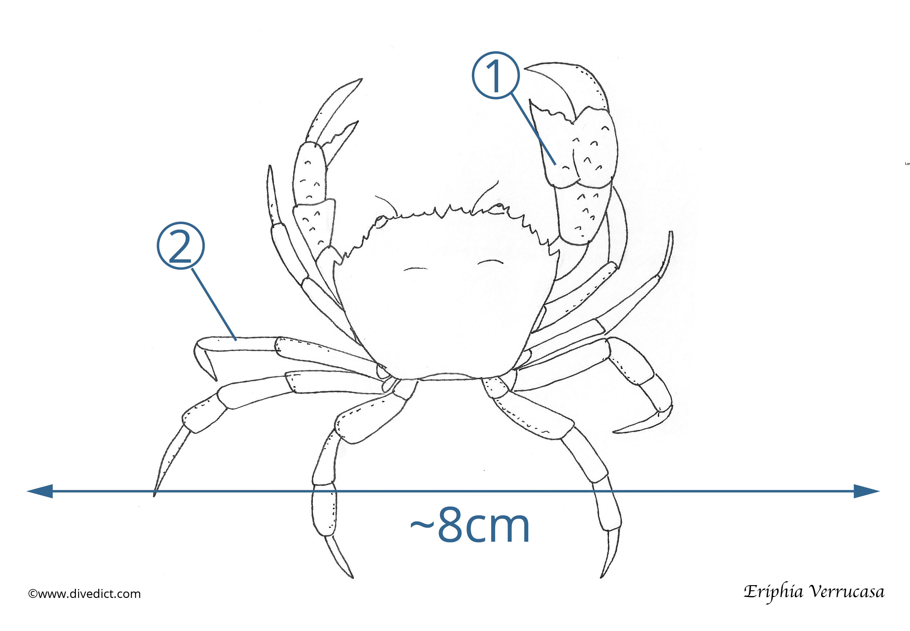 The best way to recognize this crab is that one pair of claws is significantly larger than the other.