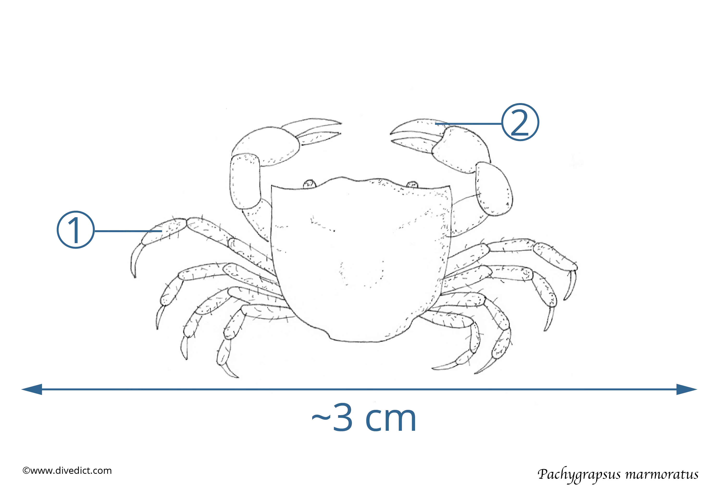 It is undoubtedly the small (2 - 3.5 cm) picture book crab. Compared to their carapax, their scissors are noticeable and not a bit bulky.