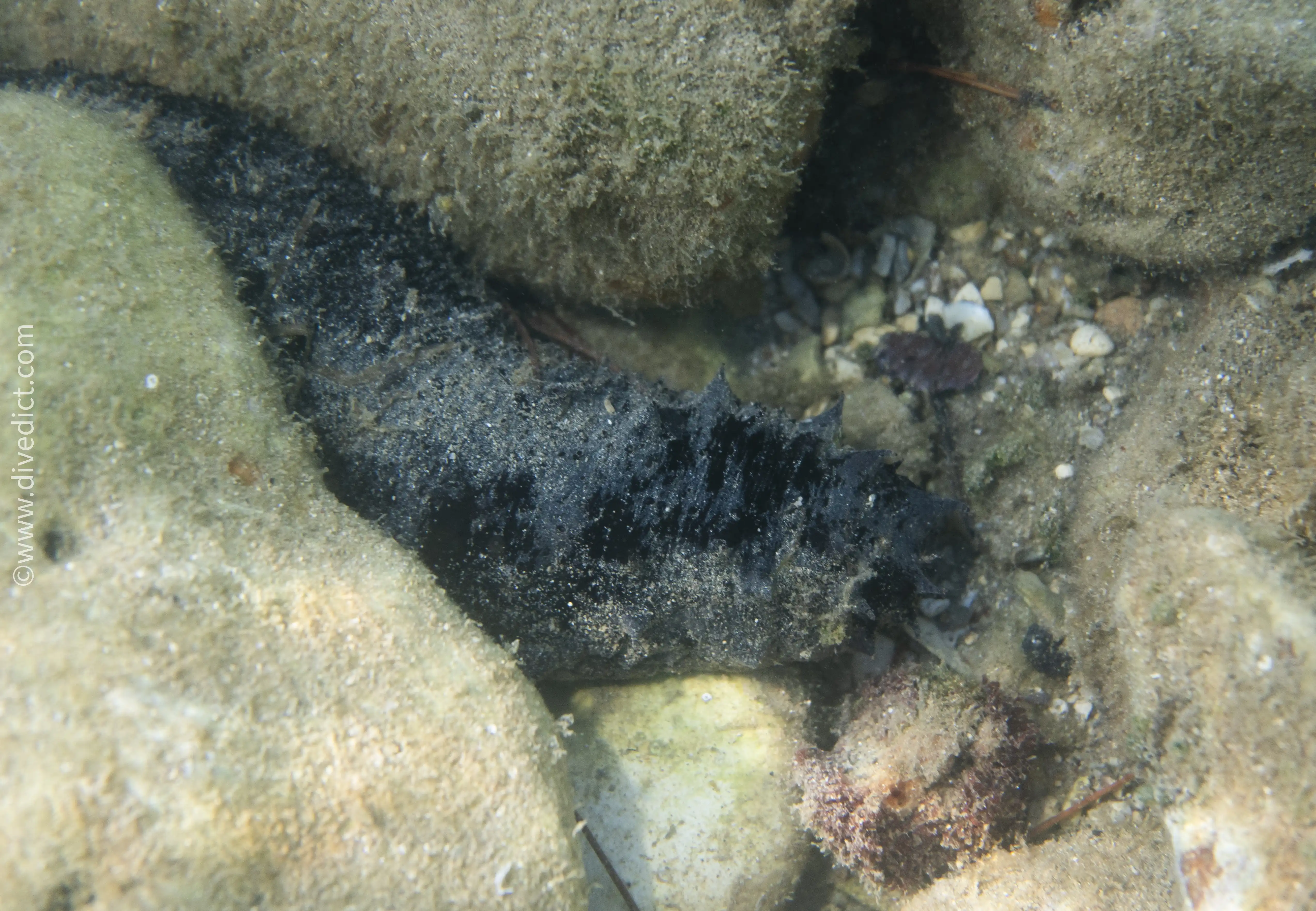 When the white spot cucumber enjoys the underwater sun, its white dots shimmer almost as if they were small diamonds.