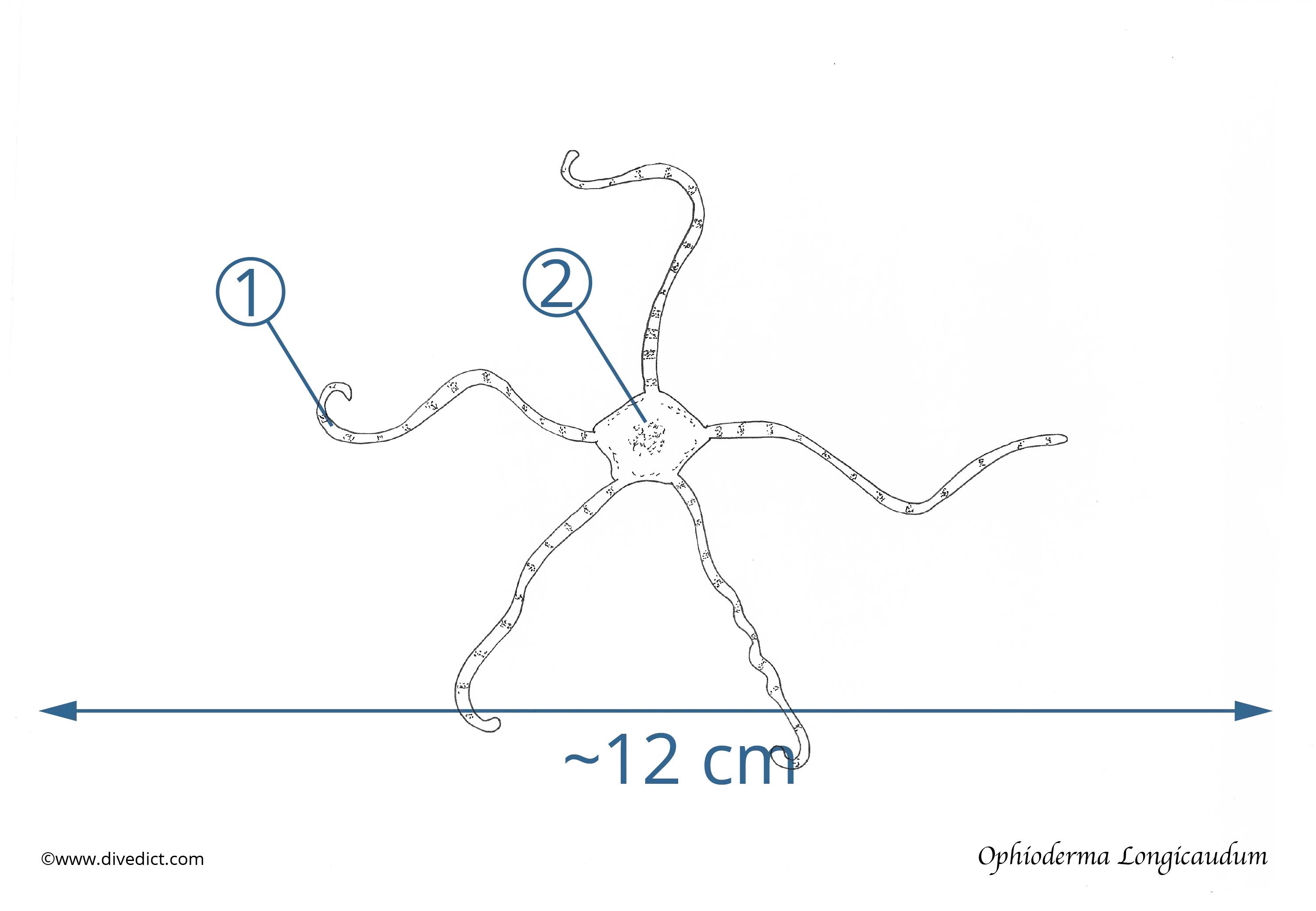 Its disc grows up to 3cm in size but appears massive compared to its five long (12cm), thin arms.