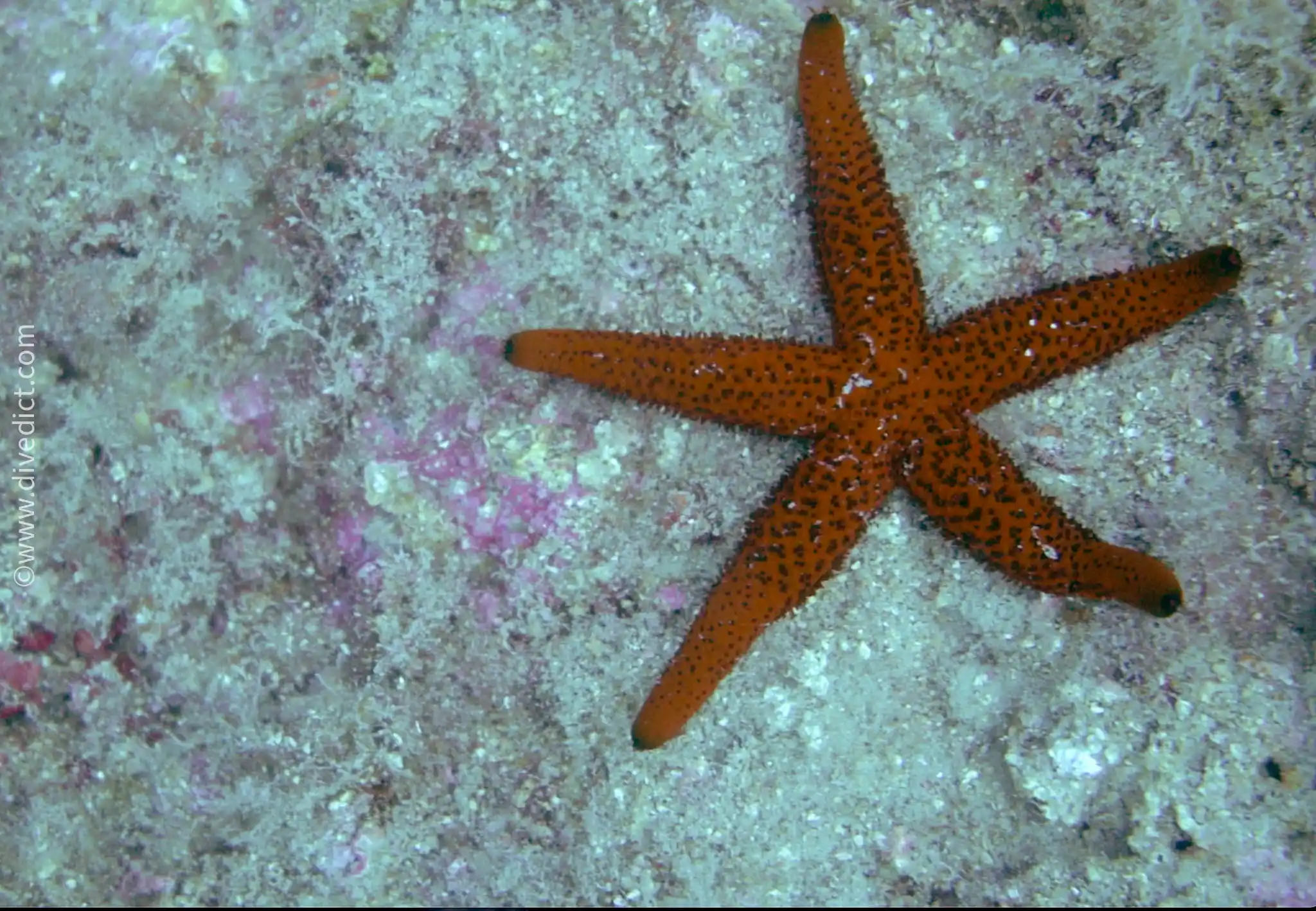 The red starfish actually looks exactly as you would imagine the typical starfish, just that sometimes it can have six or seven arms instead of five.