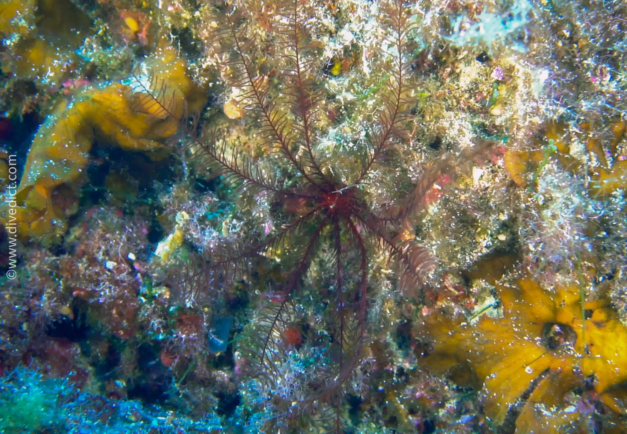 The Rosy feather-star looks particularly fragile, as if it does not belong in the sometimes stormy and dark world of the sea.