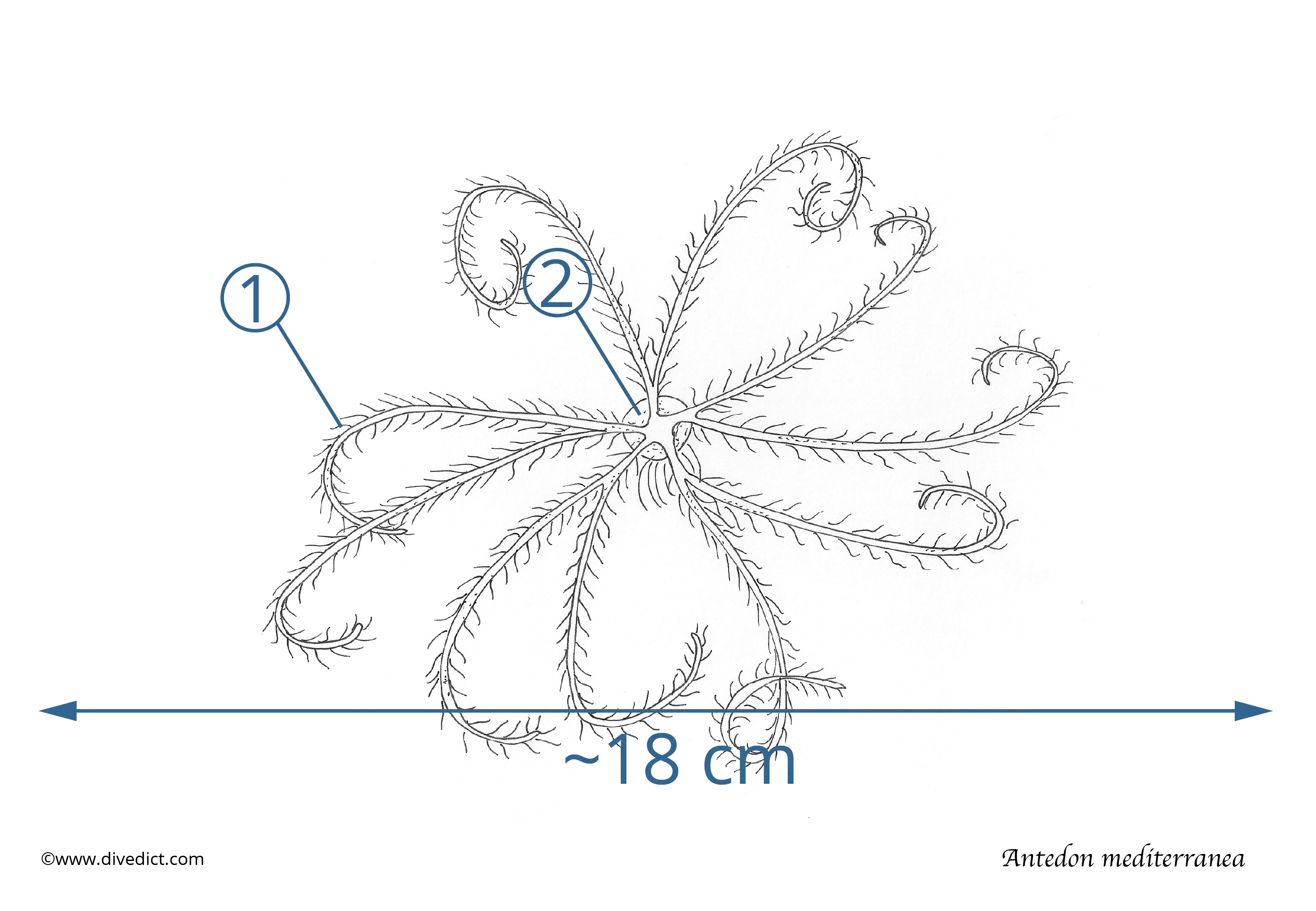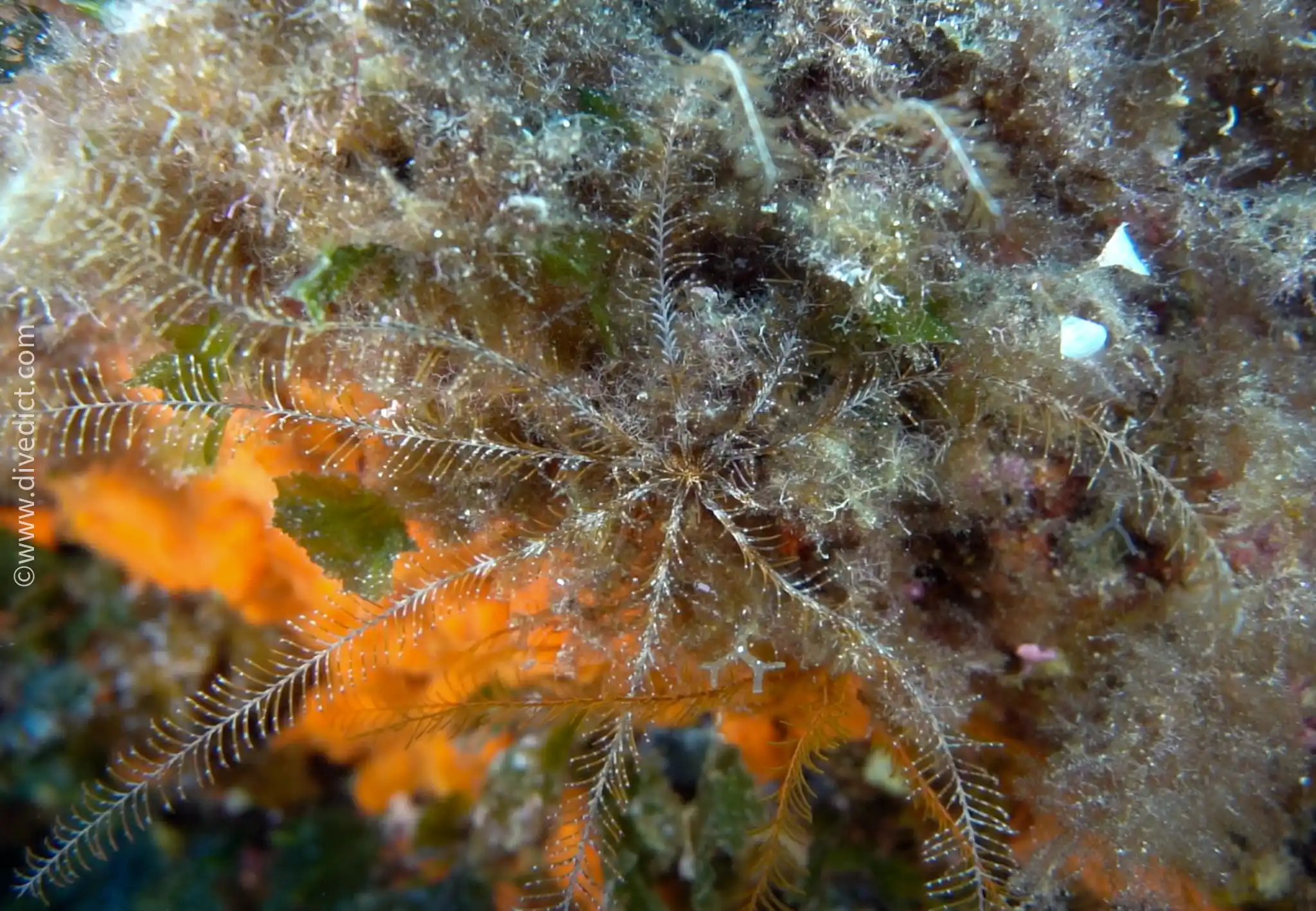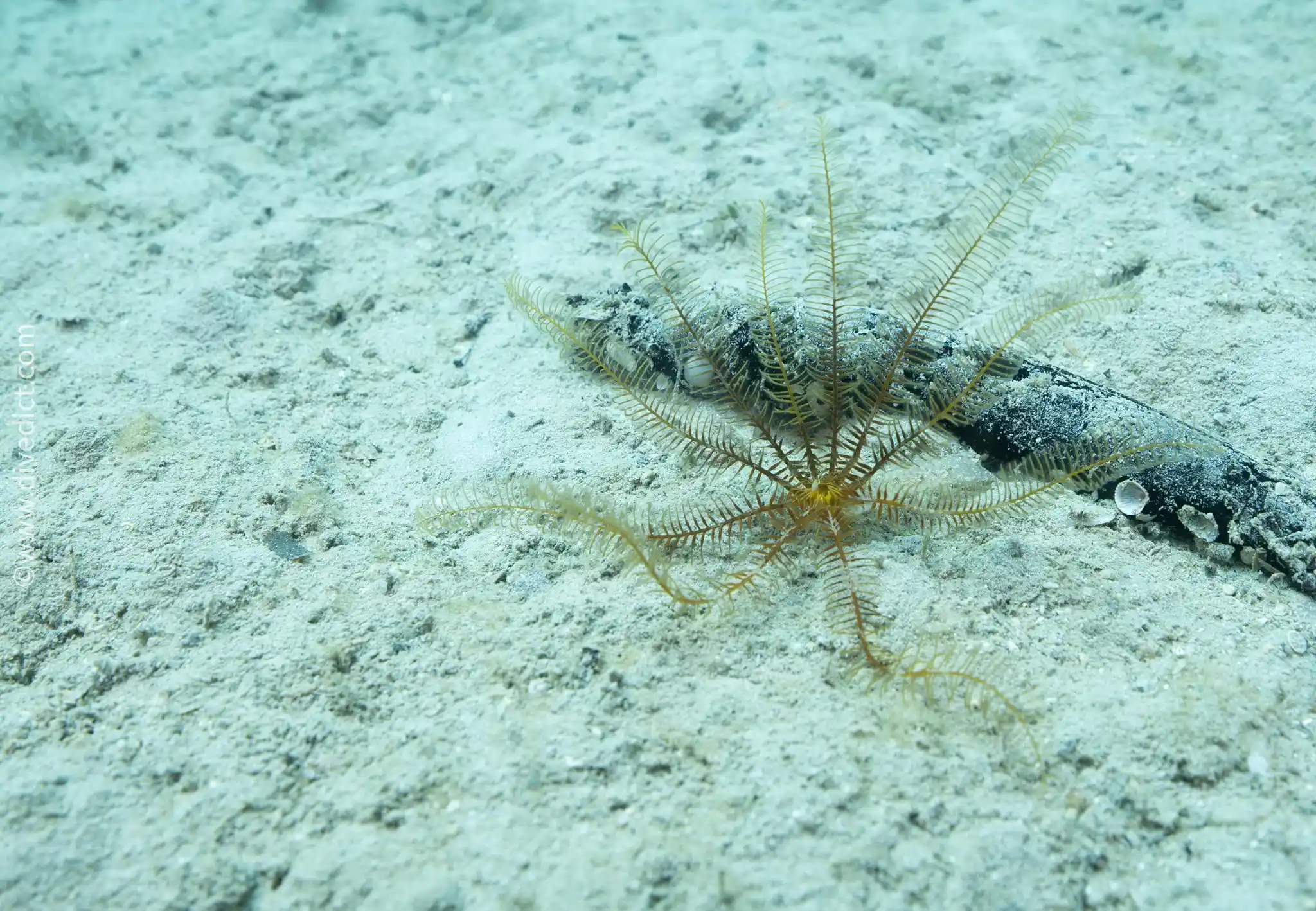 It clings to rocky outcrops or other elevations on the seabed, including gorgonians or sea squirts, and stretches its delicate little arms vertically upwards.