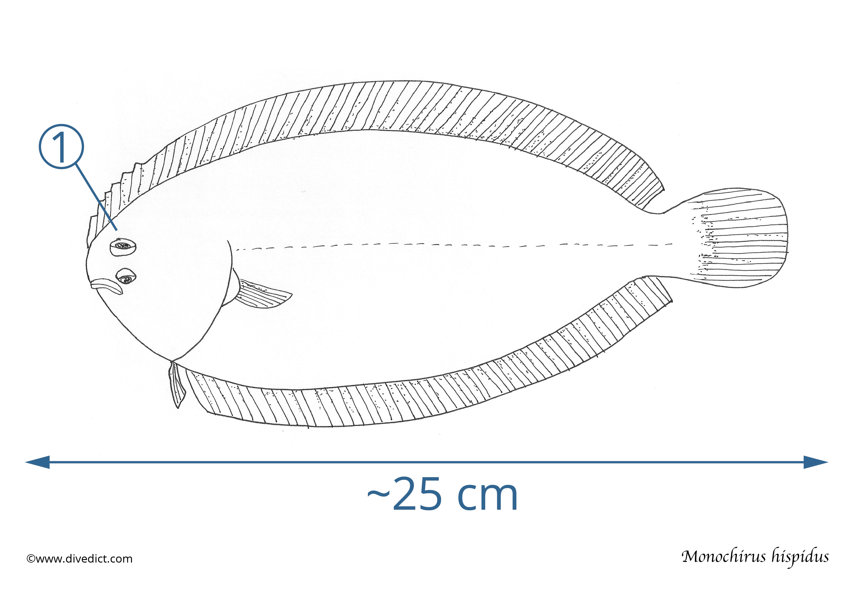 Similar to other flatfish, the Whiskered sole undergoes a transformation in which the face of the small larval fish moves to the other side of the body.