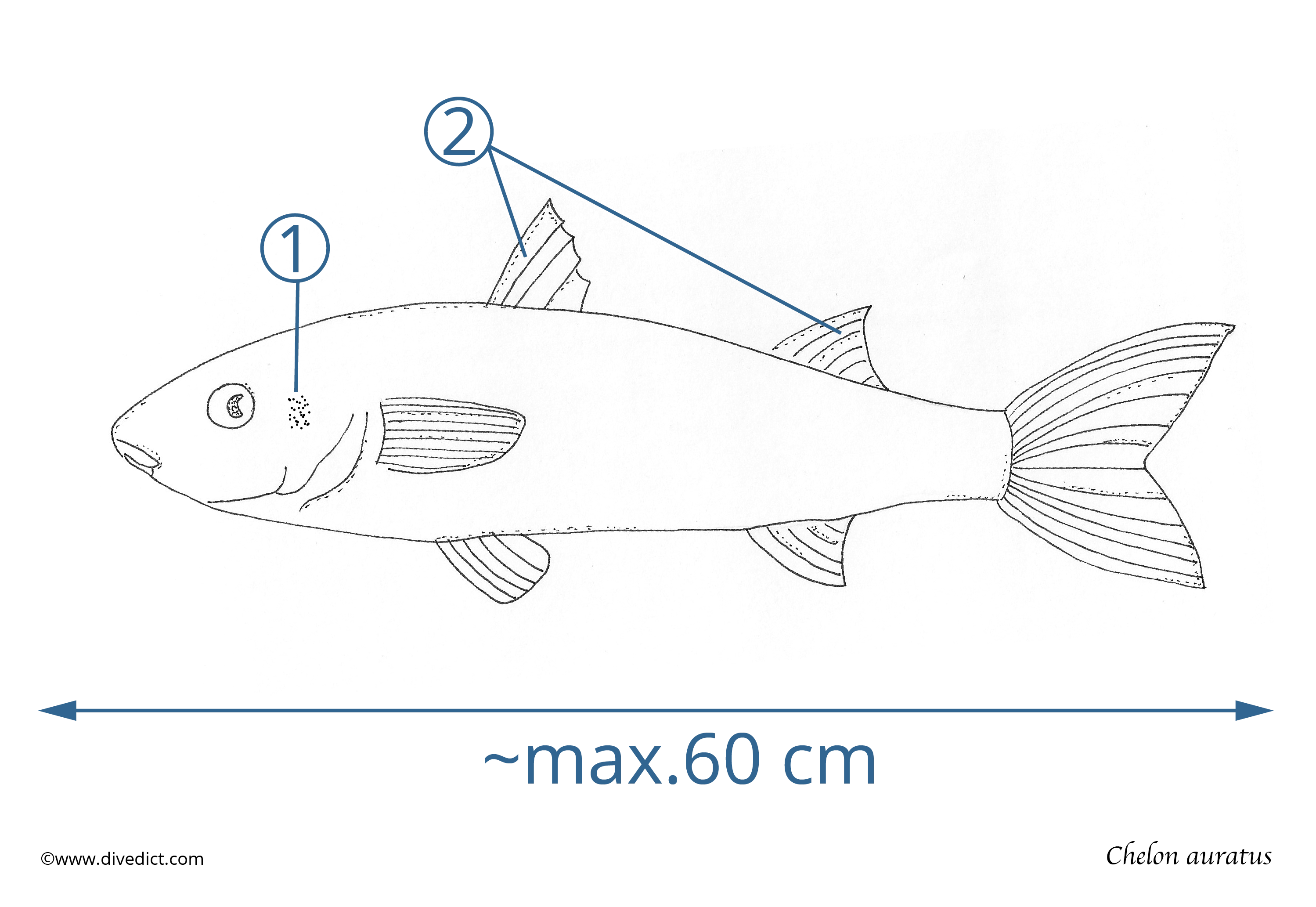 If you search for the Golden grey mullet, you will find it in shallow, muddy coastal areas, where it digs in the ground in small schools and searches for dug-in invertebrates.