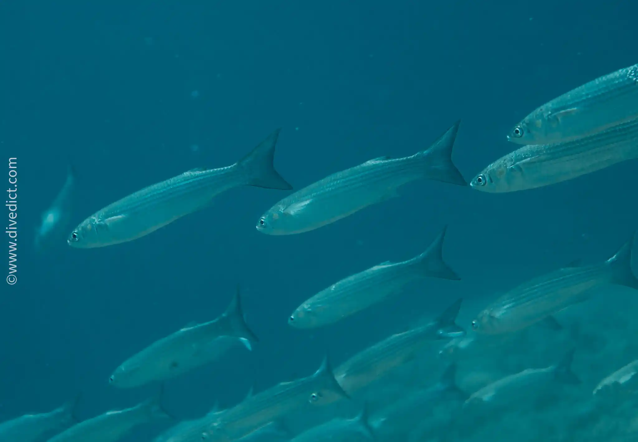 During the mating season from July to November, the adult Golden grey mullets form flocks to find a suitable place to lay eggs.