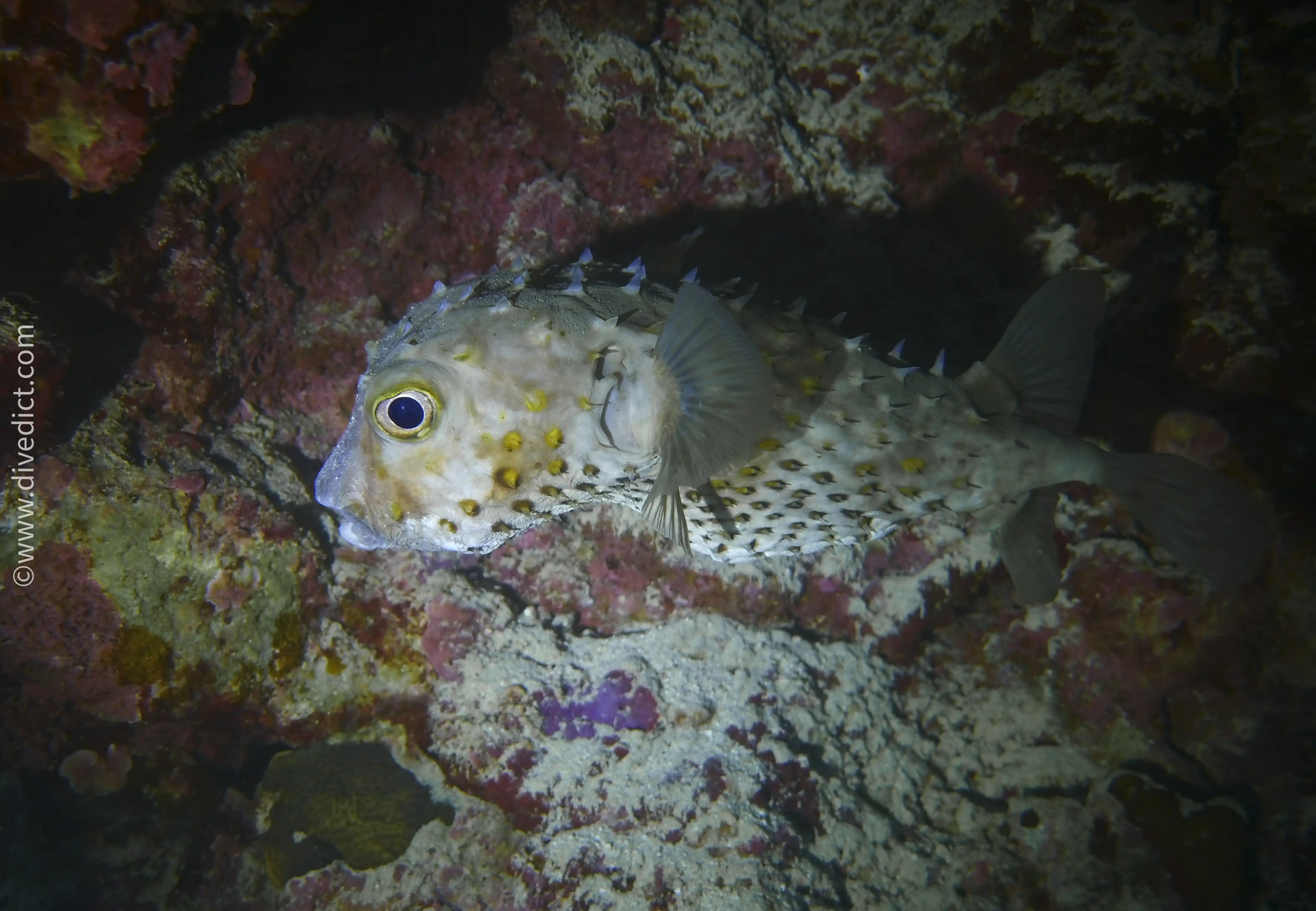 Like hedgehogs on land, porcupinefish are nocturnal. They hide in caves during the day.