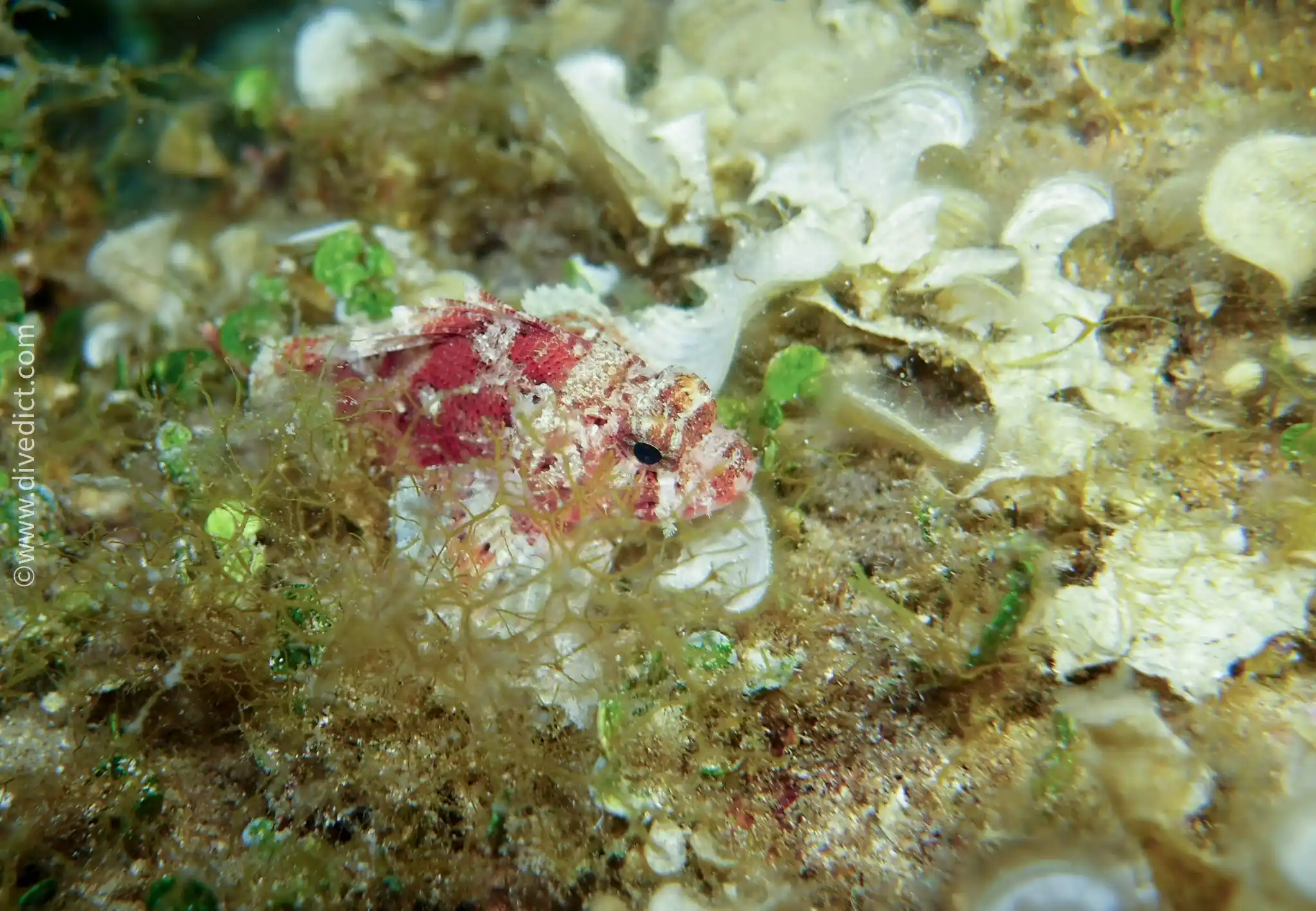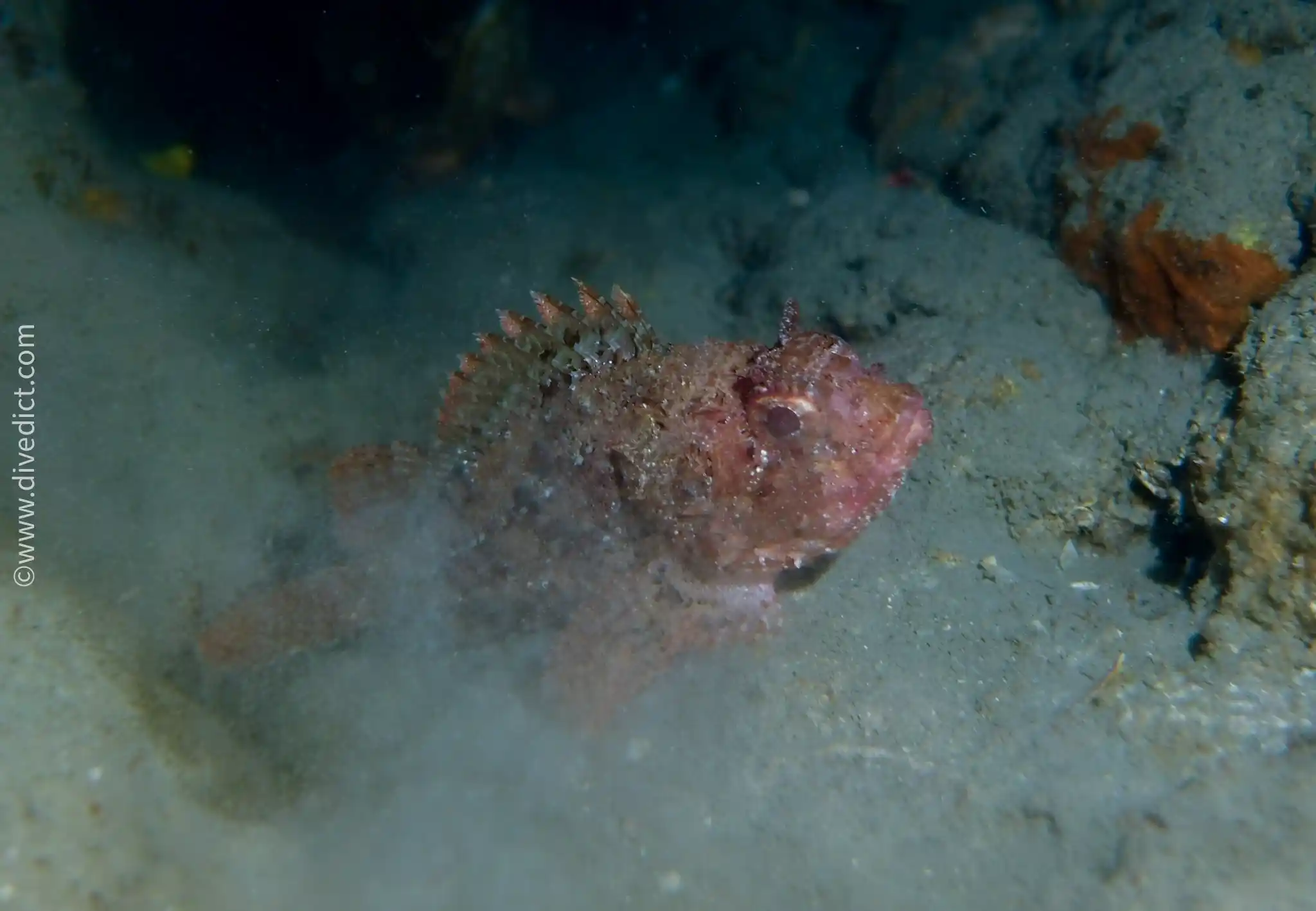 The Little Scorpionfish is a poor swimmer and therefore mainly stays on the ground. In doing so, it blends well with its surroundings.