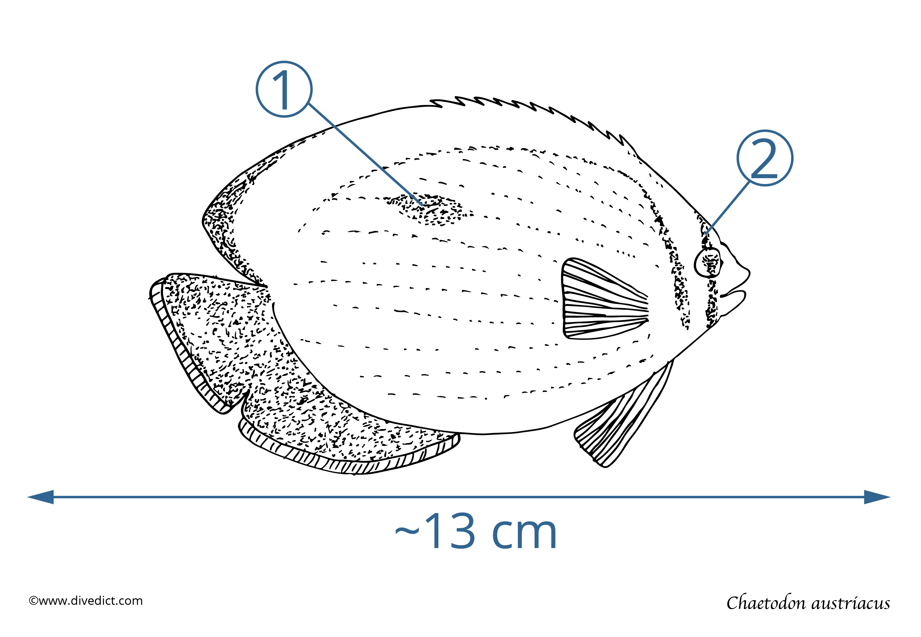 This colleague of butterflyfish also stands out with its bright yellow base color. However, its tail and anal fins are pitch black. His head is decorated with black, vertical stripes, one of which is used to camouflage his eye to confuse predators. The rest of his body is decorated with black horizontal stripes, above which is his pale yellow to white dorsal fin. Some specimens have additional subtle light blue stripes along the dorsal fin and are therefore particularly attractive to look at.