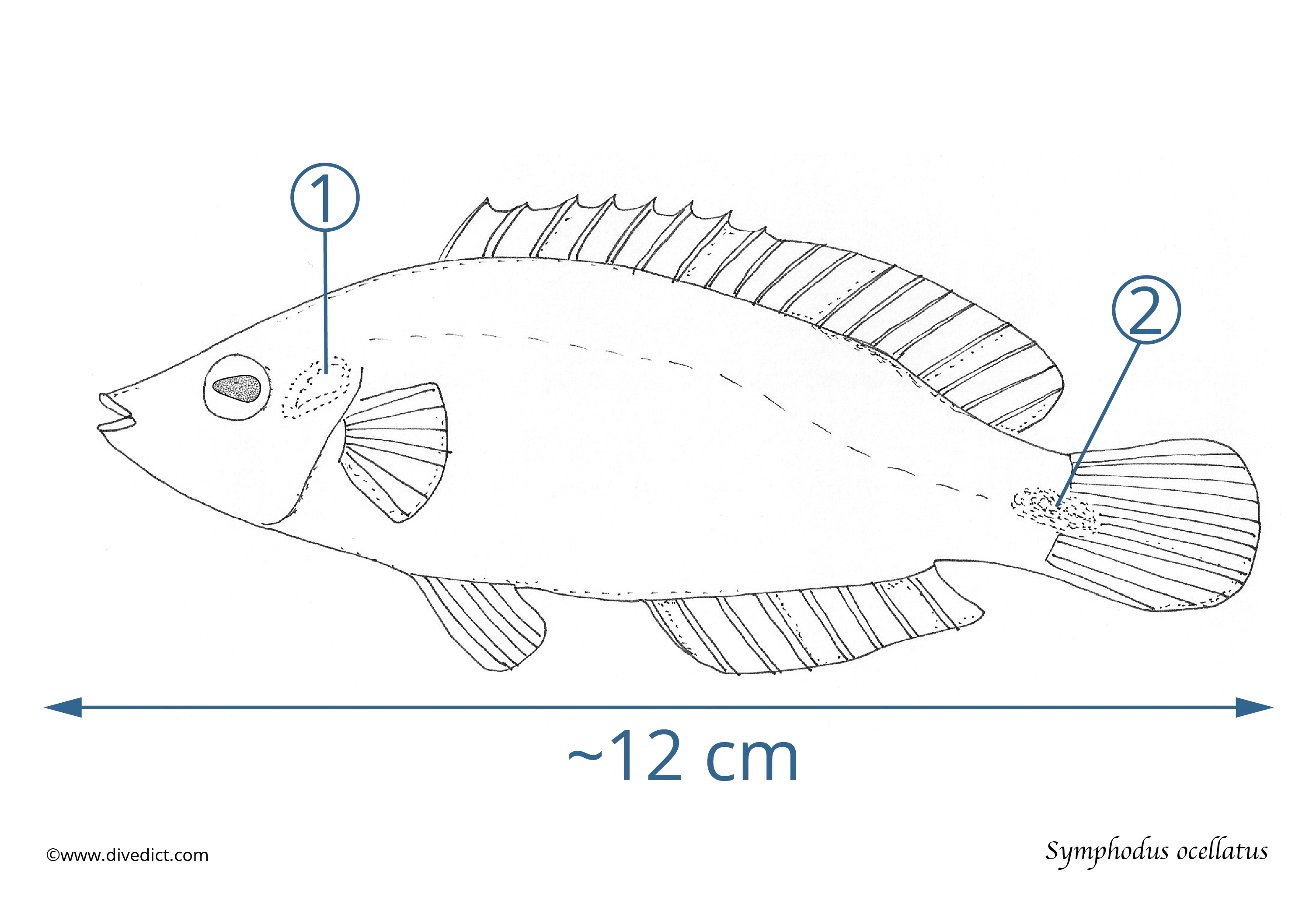 You can identify this species relatively easily because of its dark green spot bordered in red that is clearly visible on the gill cover.