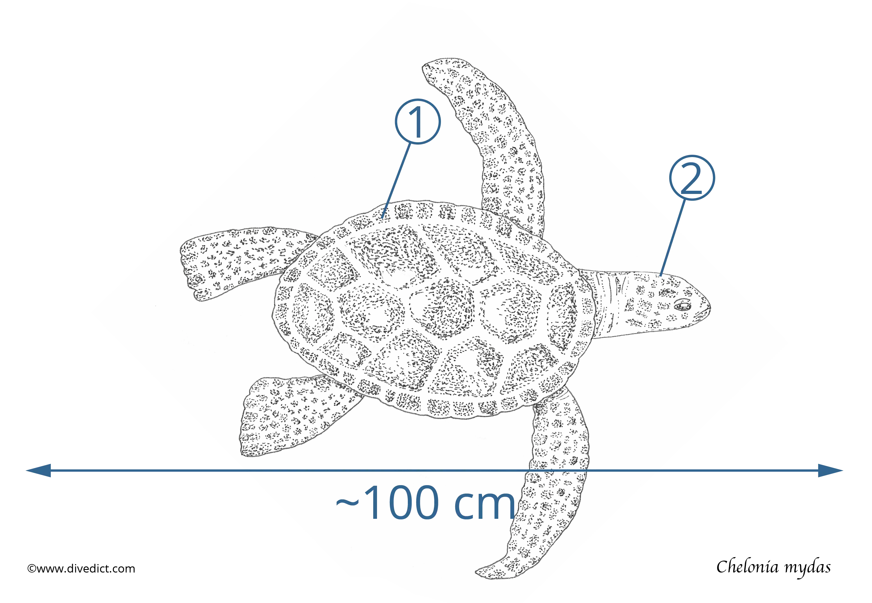 The green sea turtle can proudly claim to be the largest armored sea turtle. Its tank can be up to 1.5m long and weighs 300kg.