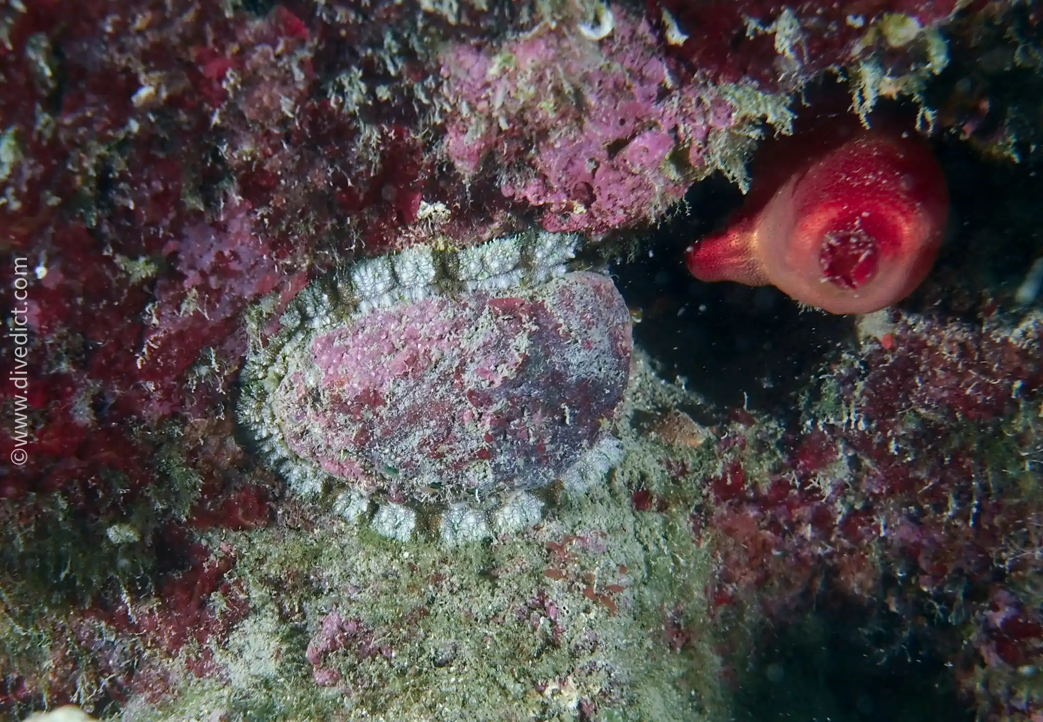 However, this coloration is often not visible because the shell is covered by bryozoans, algae, and hydrozoans.