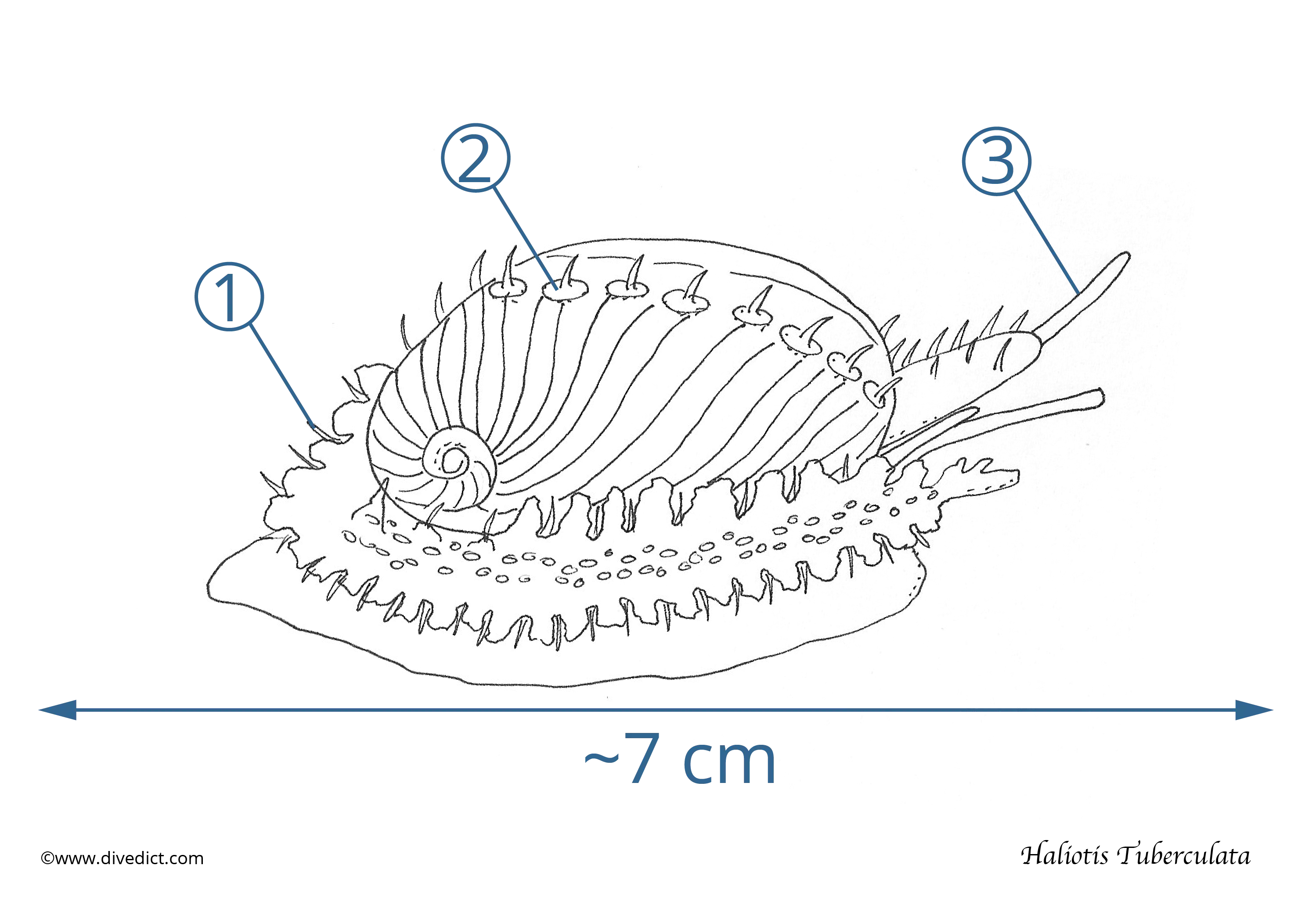 As the name suggests, their shell is ear-shaped and flat, with whorls that rapidly increase in size. The inside is covered with a beautifully shiny mother-of-pearl layer.