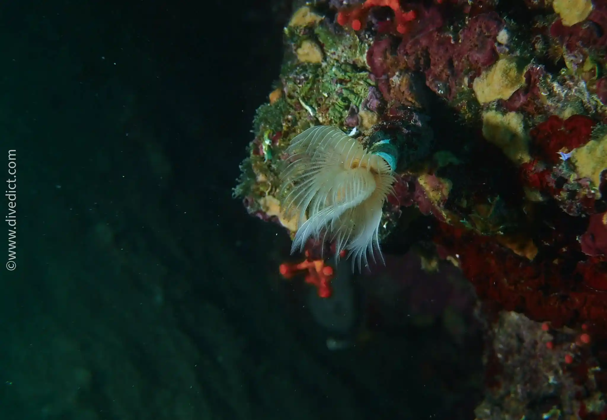 The different types of this species of Tubeworms (Protula sp. ) are barely distinguishable from one another, even specialists find it difficult to identify these peculiar tiny animals.