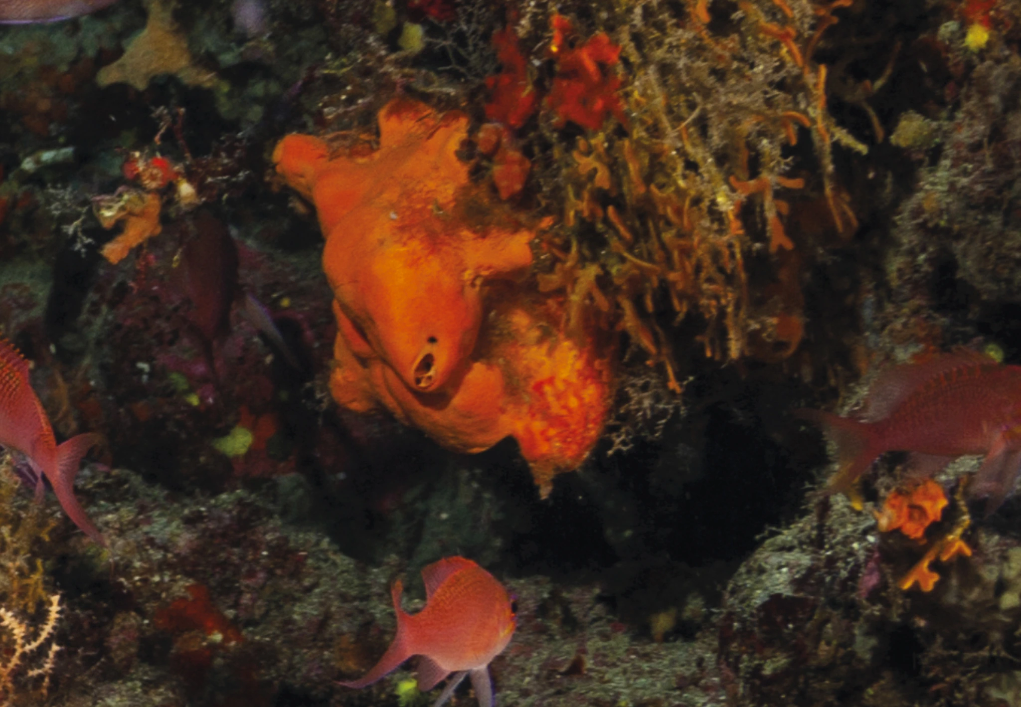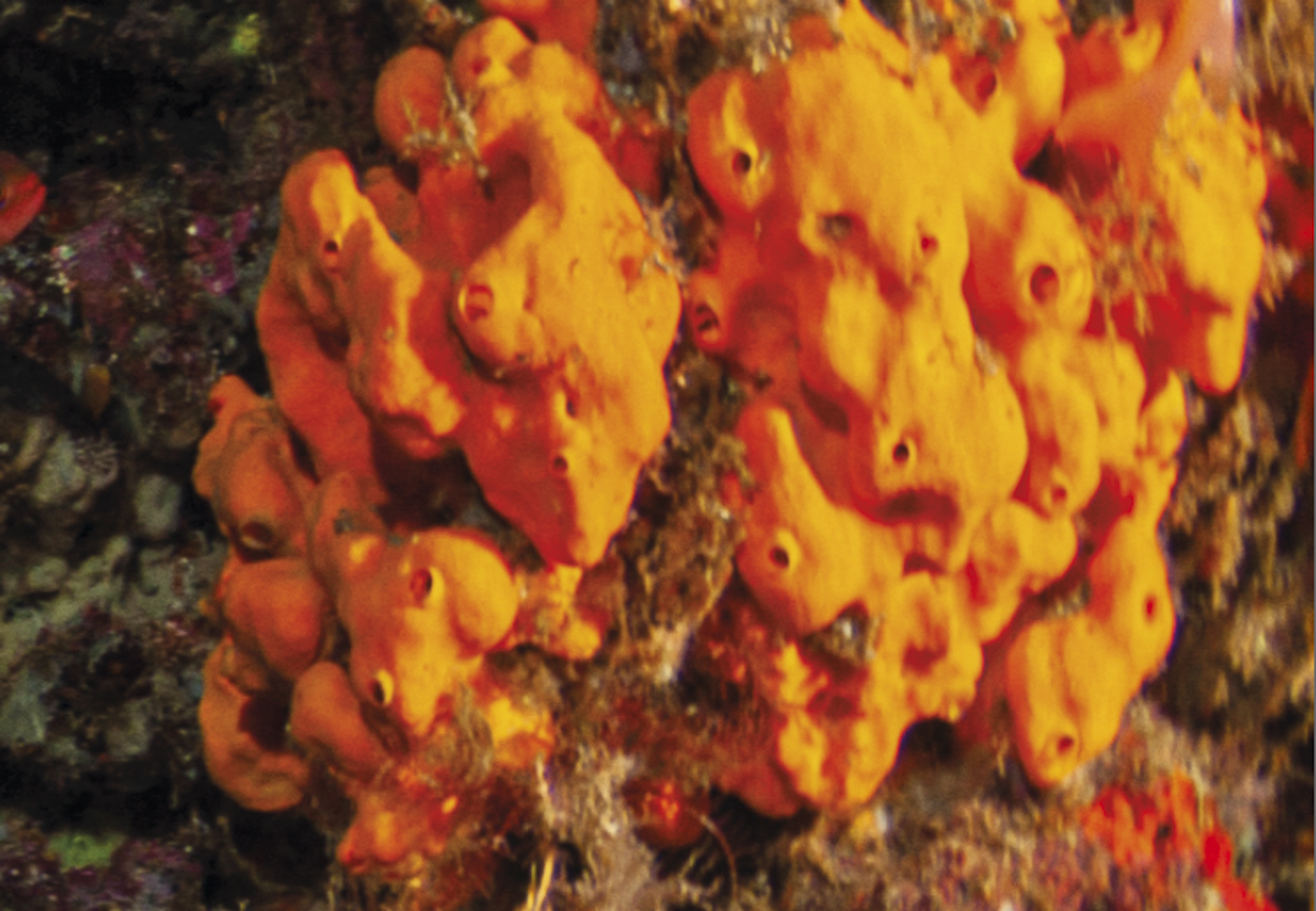 Its surface looks humpy but feels smooth and thanks to its massive spongin skeleton, it has a tough and firm consistency.